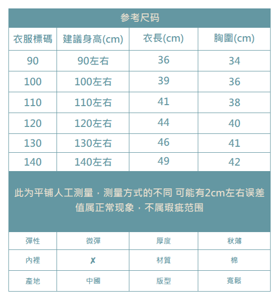 下單前務必參考尺碼表上建議身高