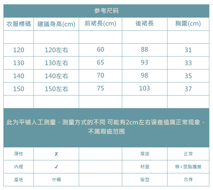 例如:身高115cm偏瘦沒有小肚子,可直接挑選110碼。