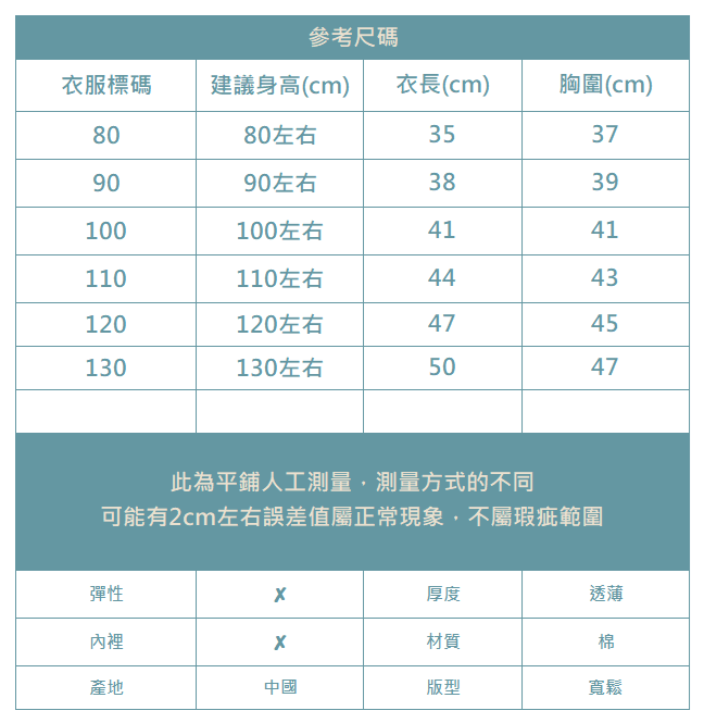 下單前務必參考尺碼表上建議身高