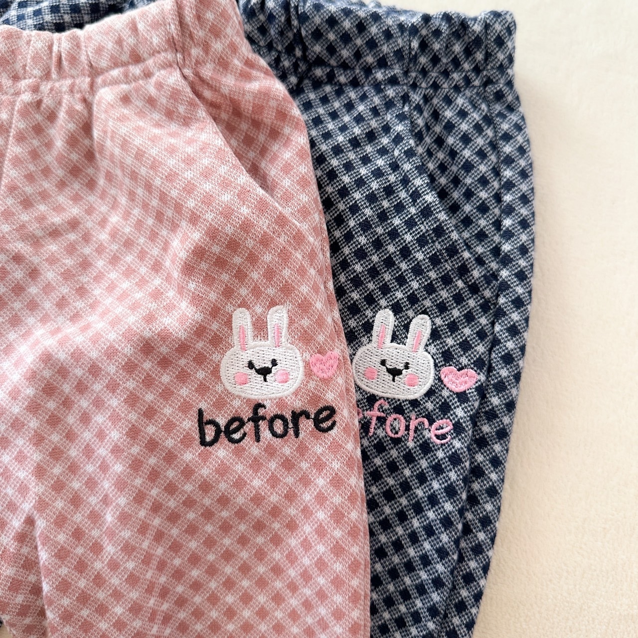 【限量】小兔頭格子彈力長褲