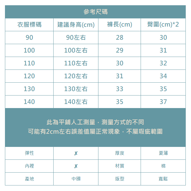 下單前務必參考尺碼表上建議身高