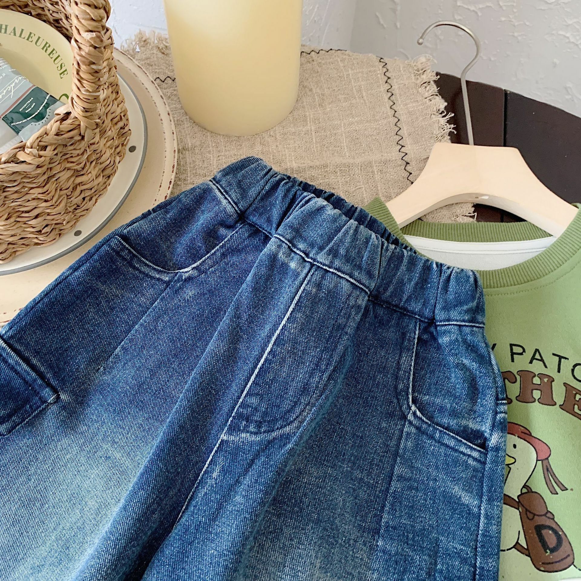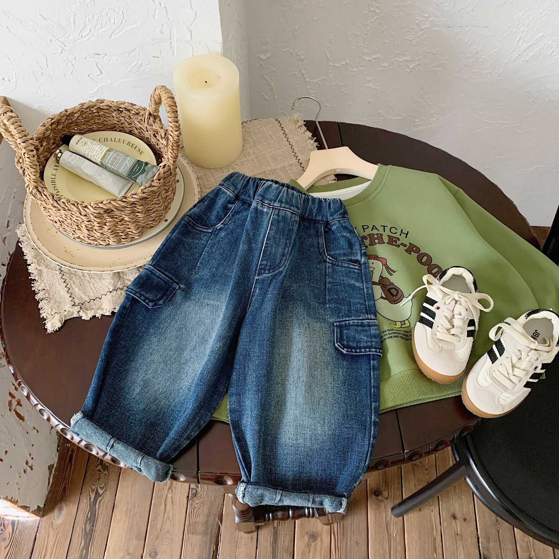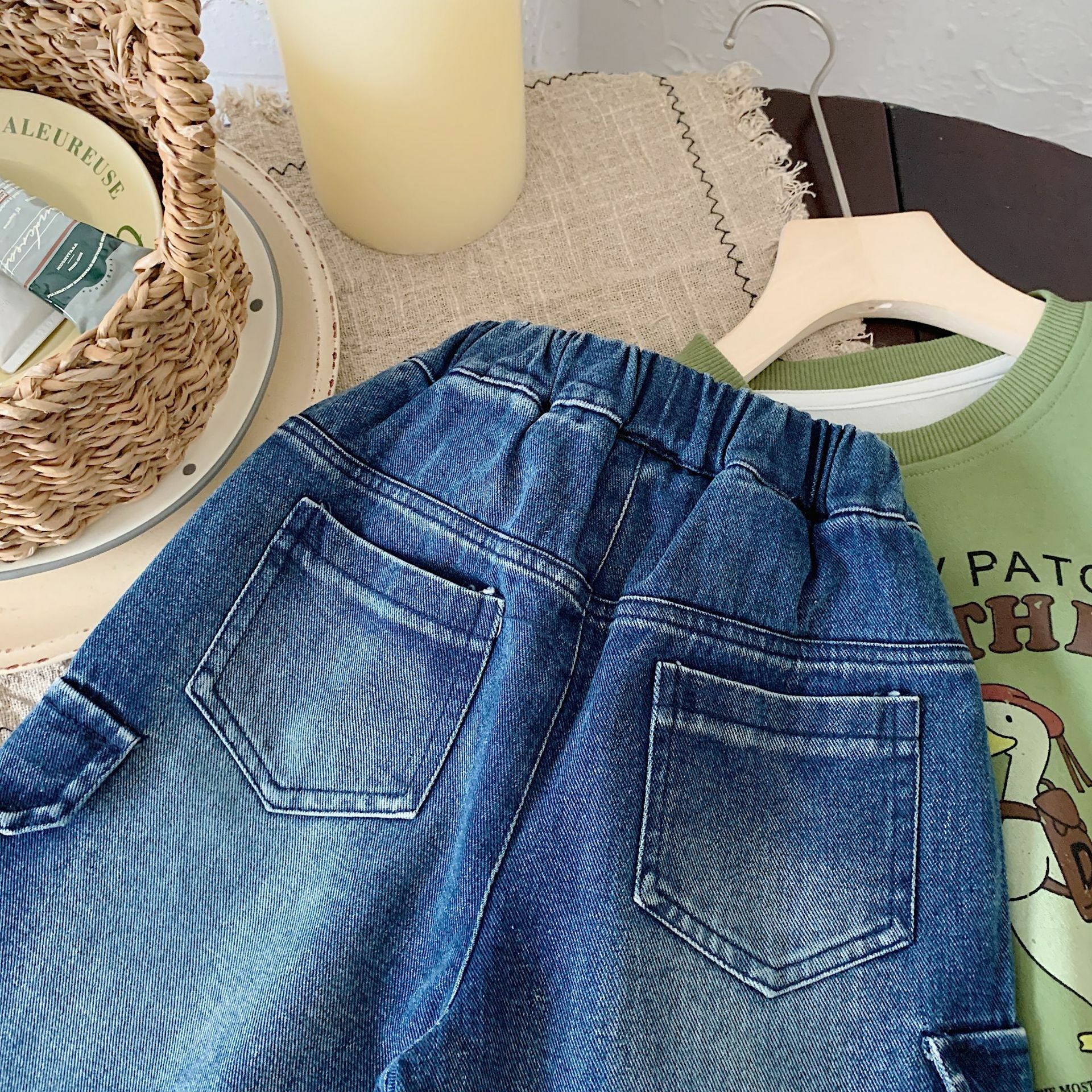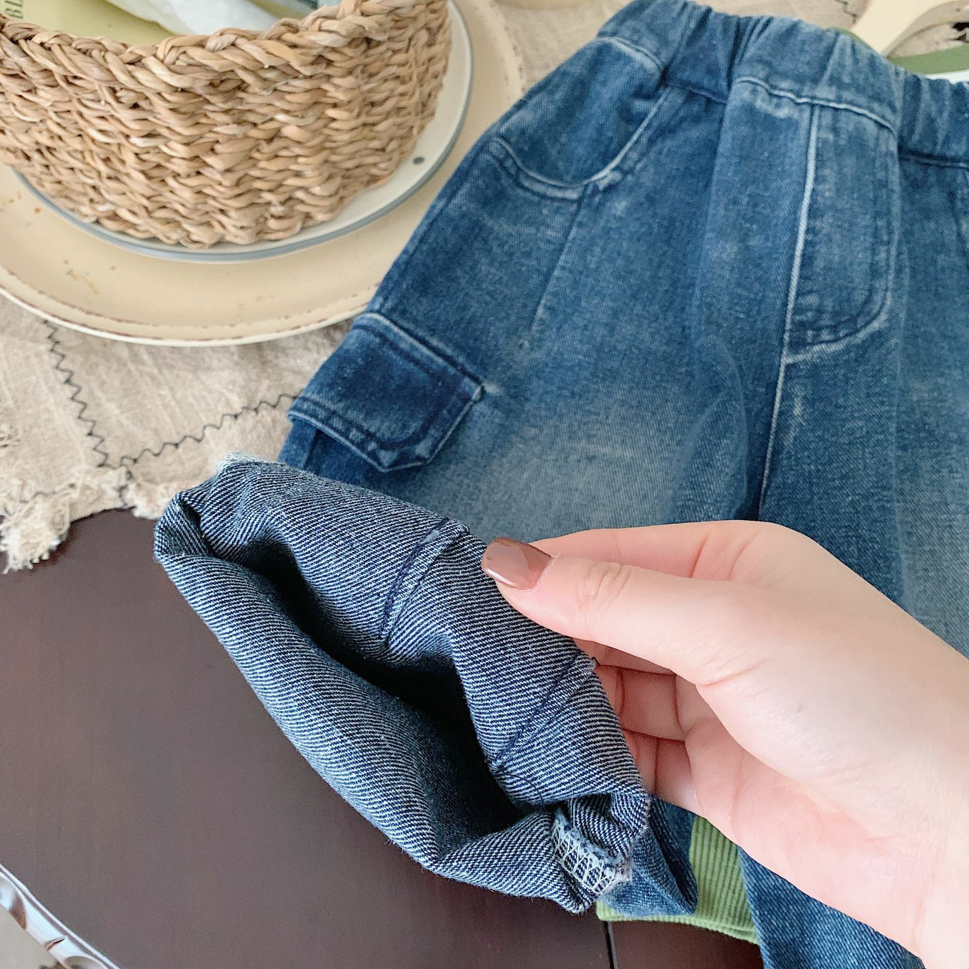 深藍口袋牛仔長褲