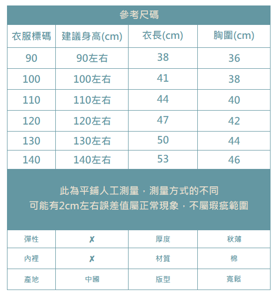 下單前務必參考尺碼表上建議身高