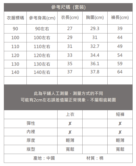 ▌內容物:上衣+長褲