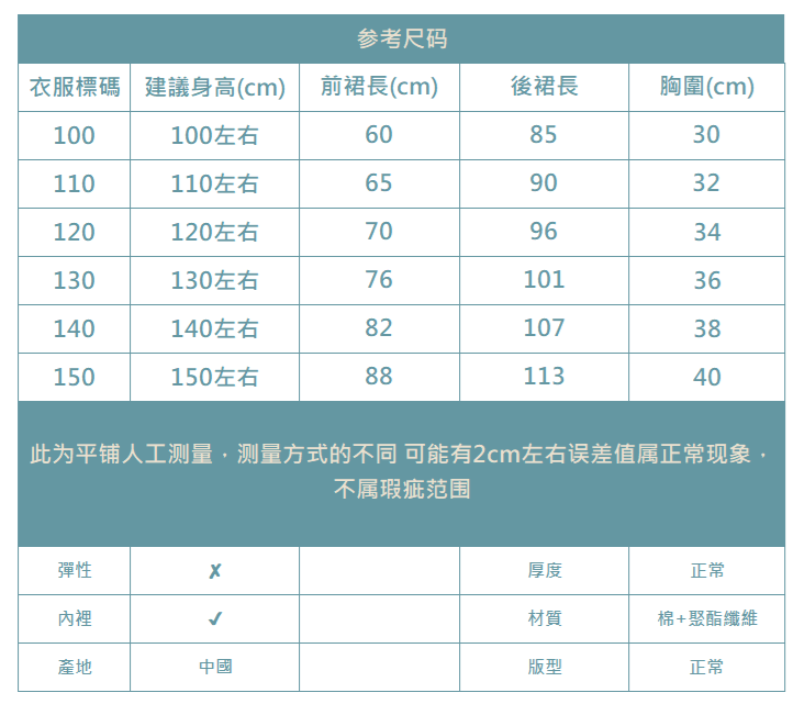 例如:身高115cm偏瘦沒有小肚子,可直接挑選110碼。