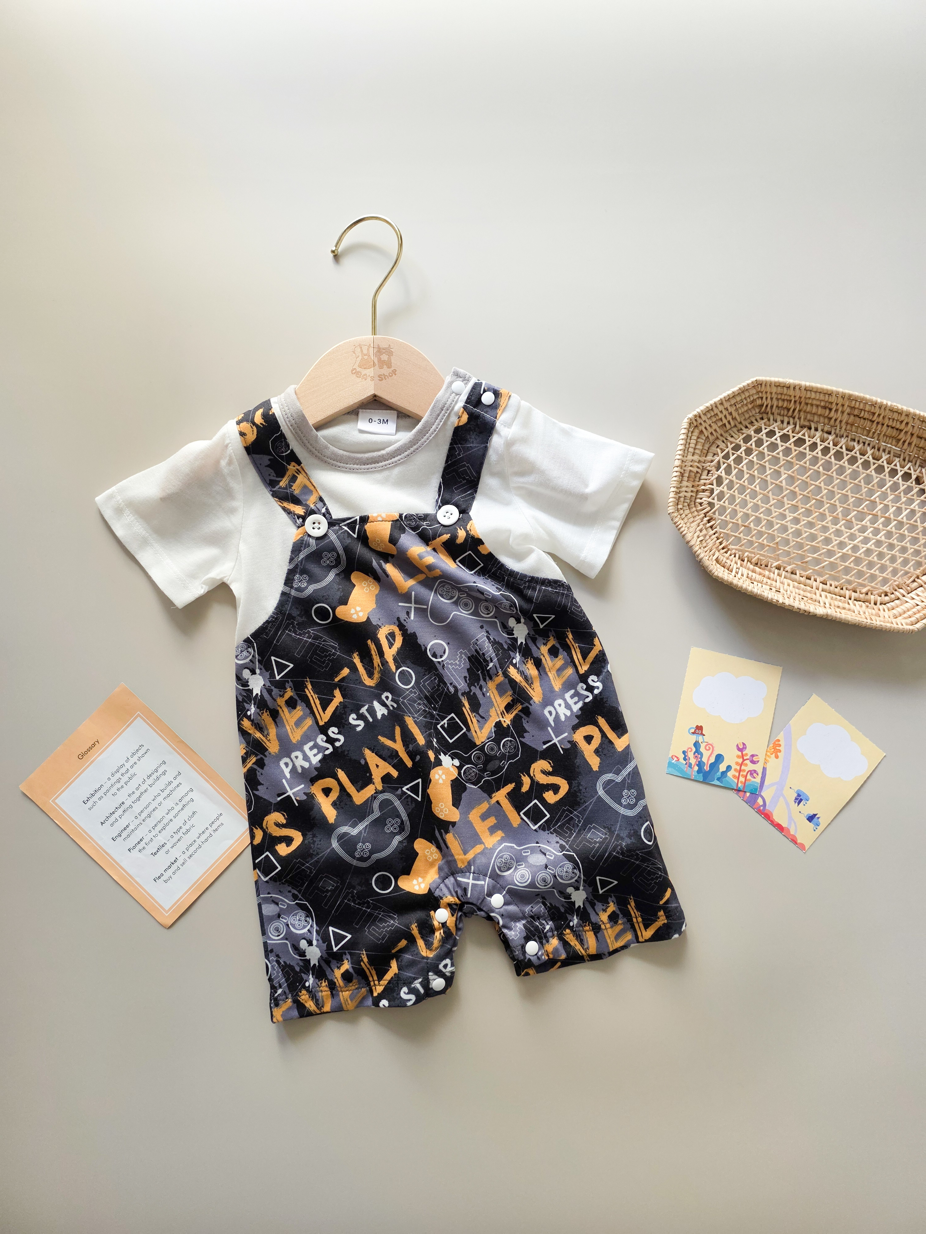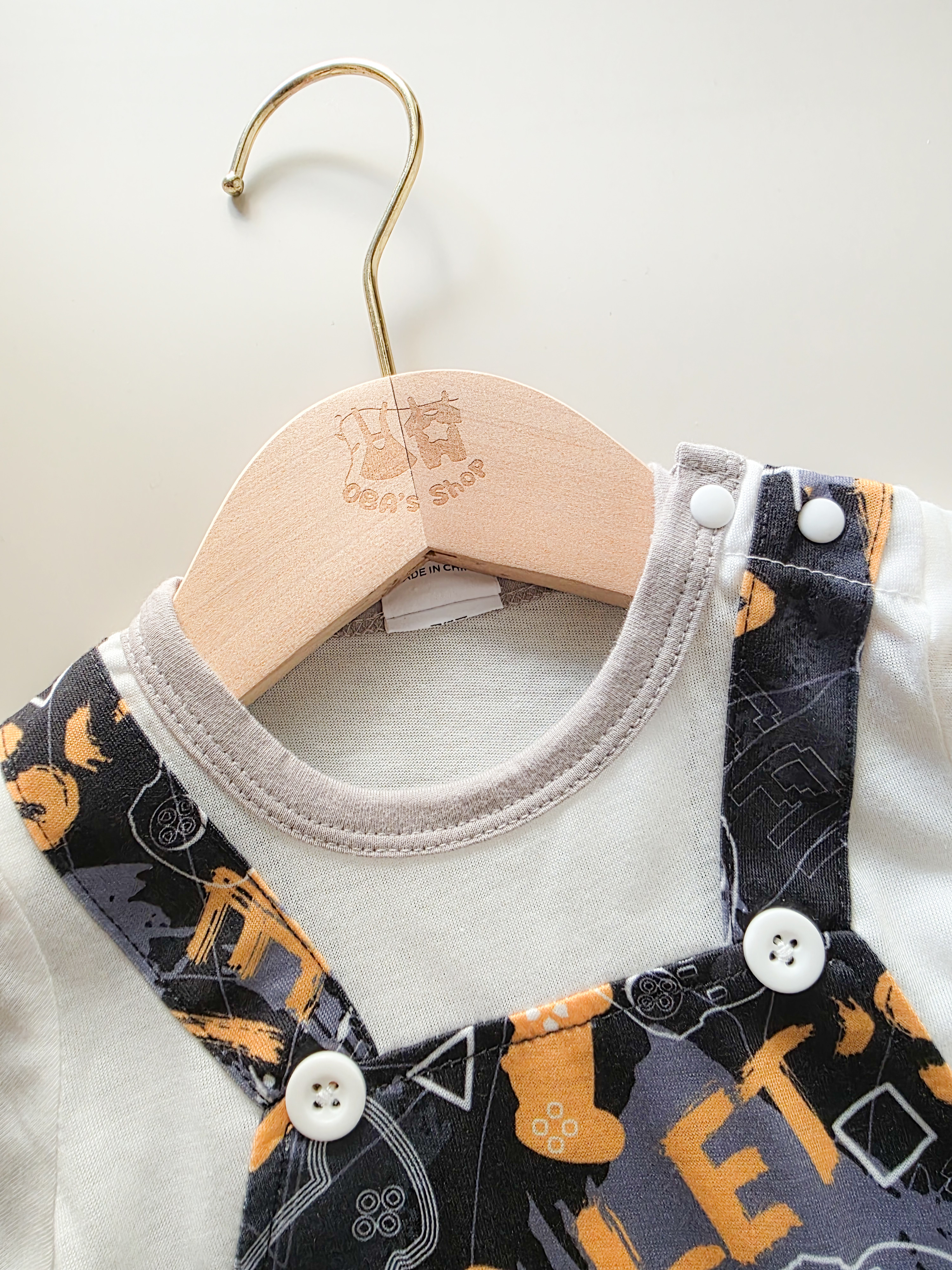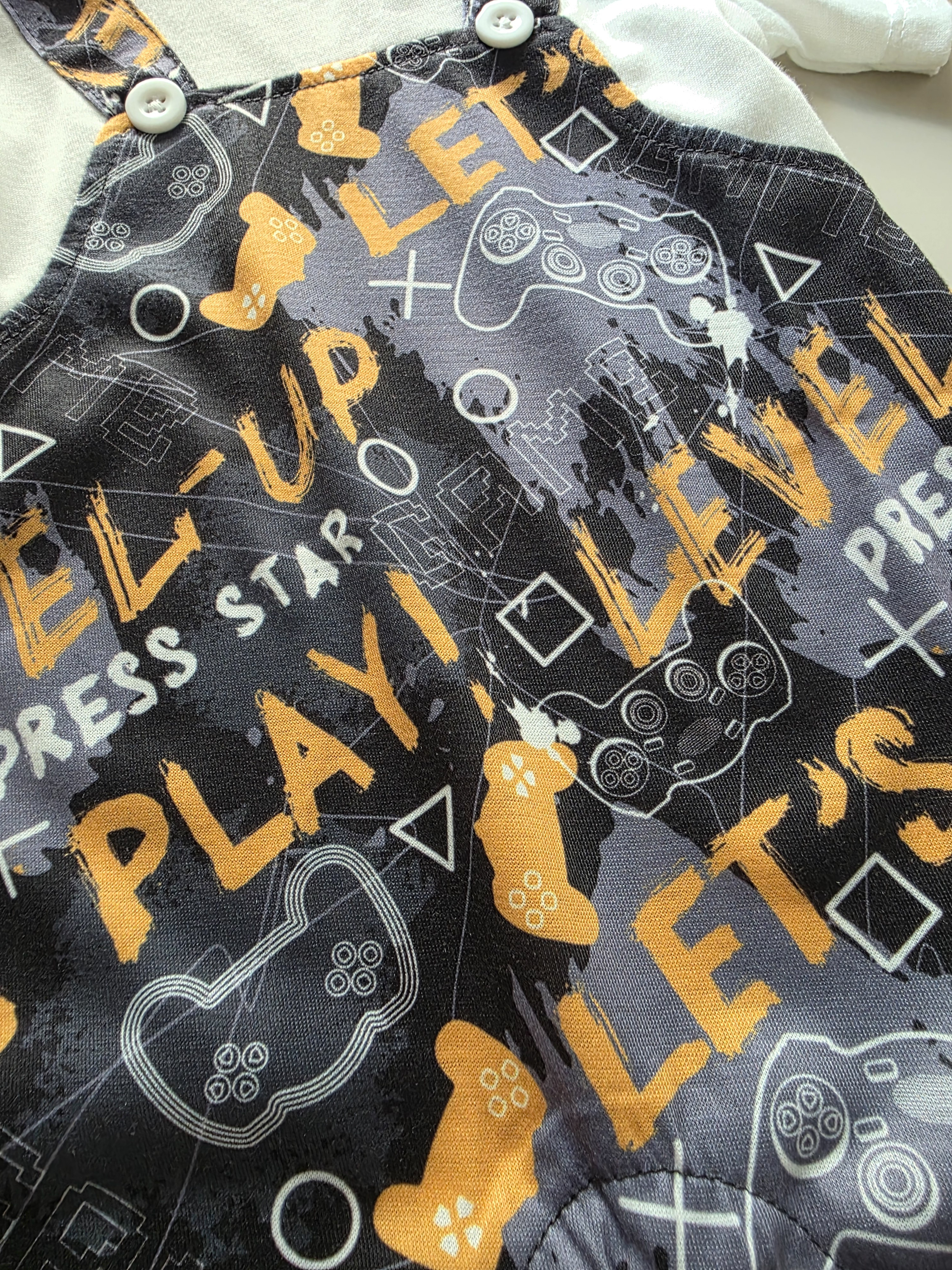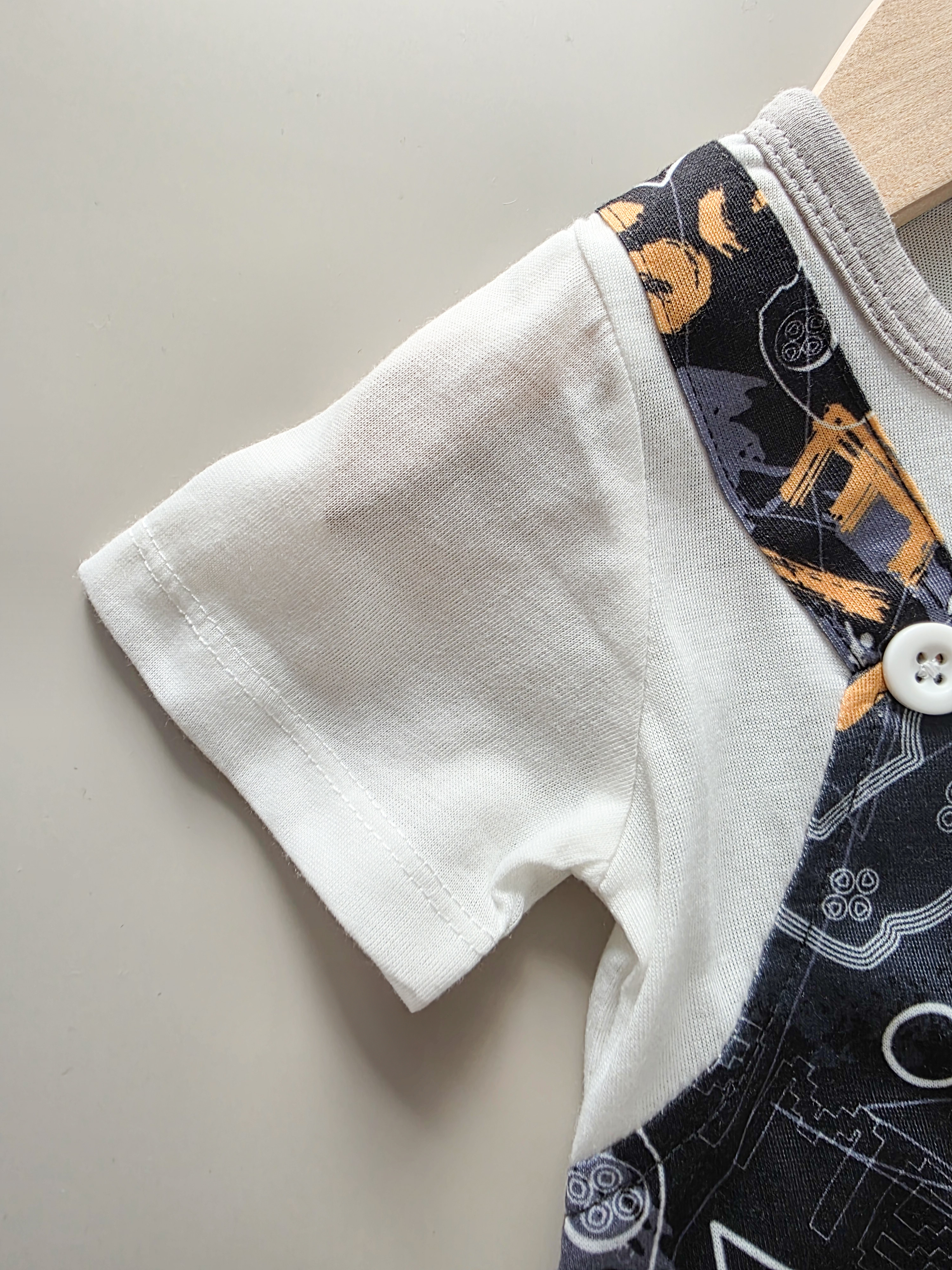 電玩字母假兩件 短袖連身衣