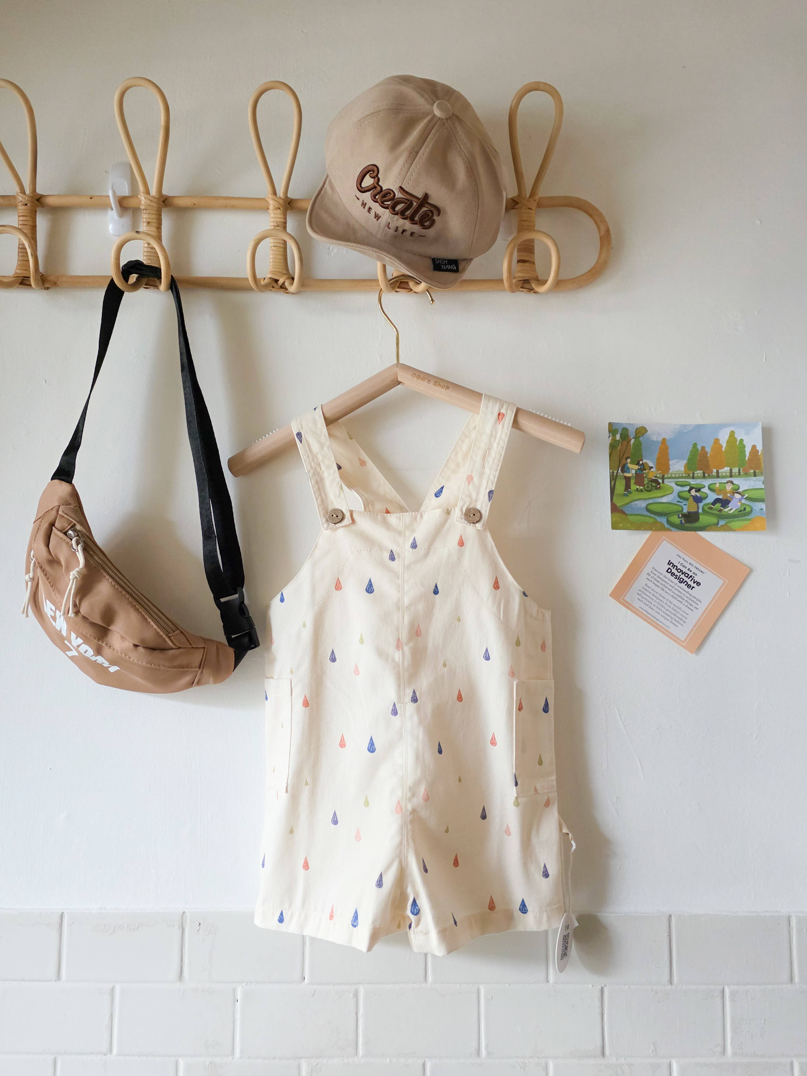 七彩條條 吊帶褲