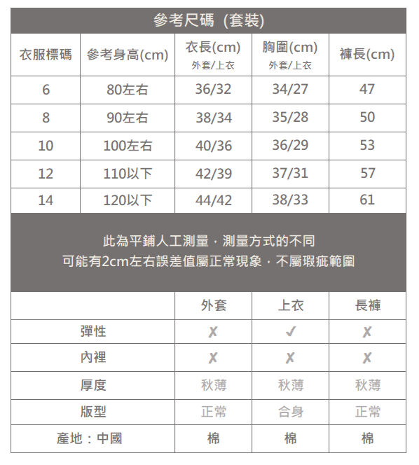 ▐ 內容物:外套 + 上衣 + 長褲