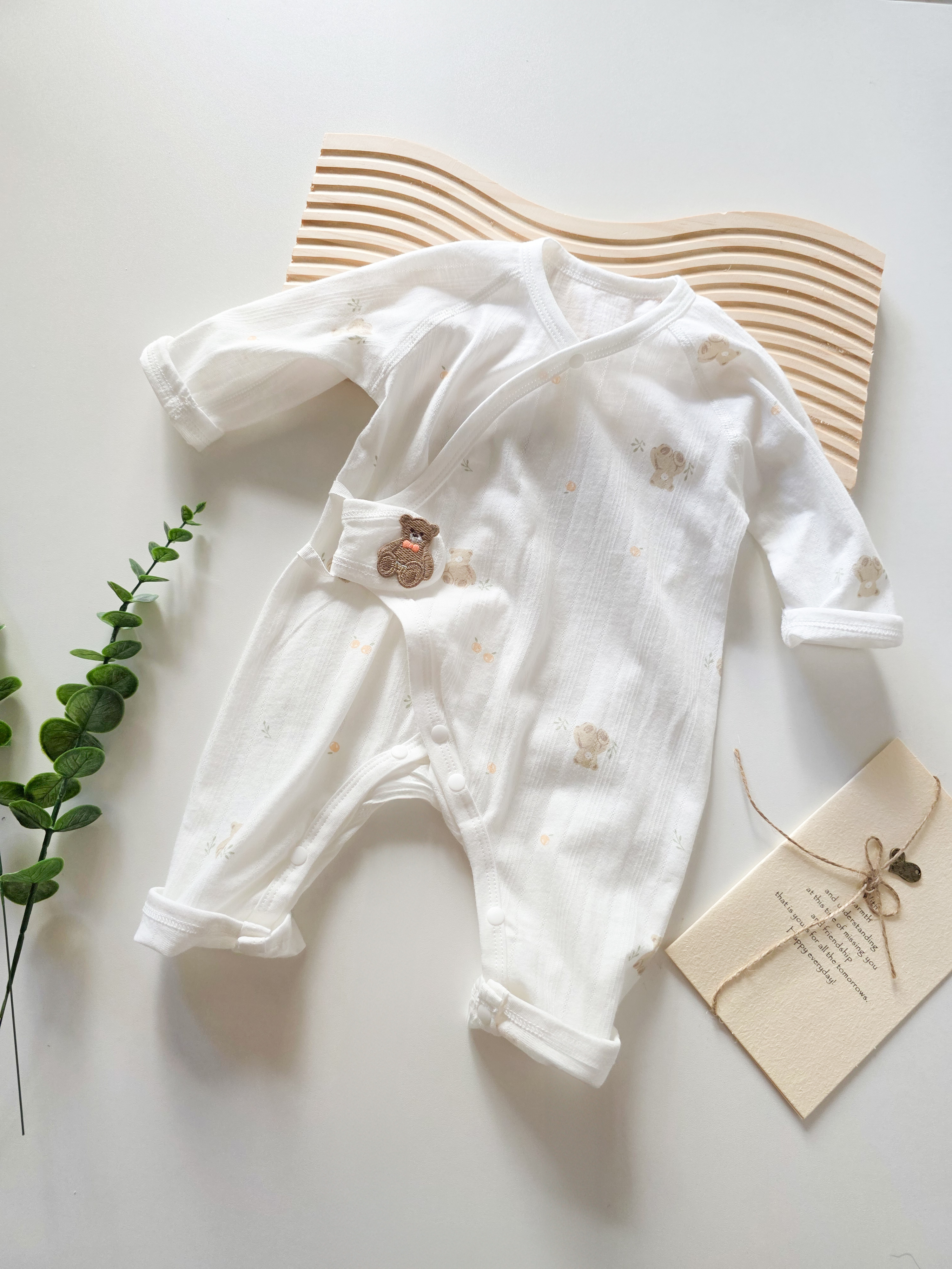 咖啡小熊 側扣長袖連身衣