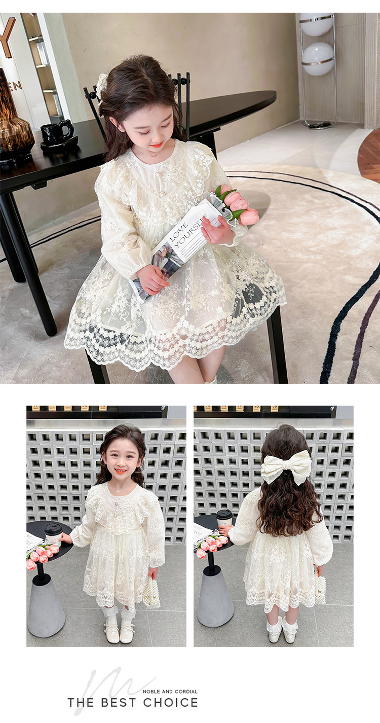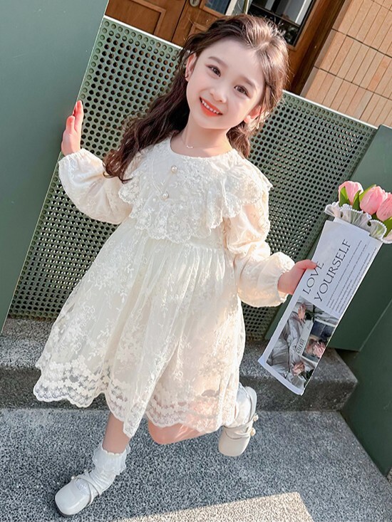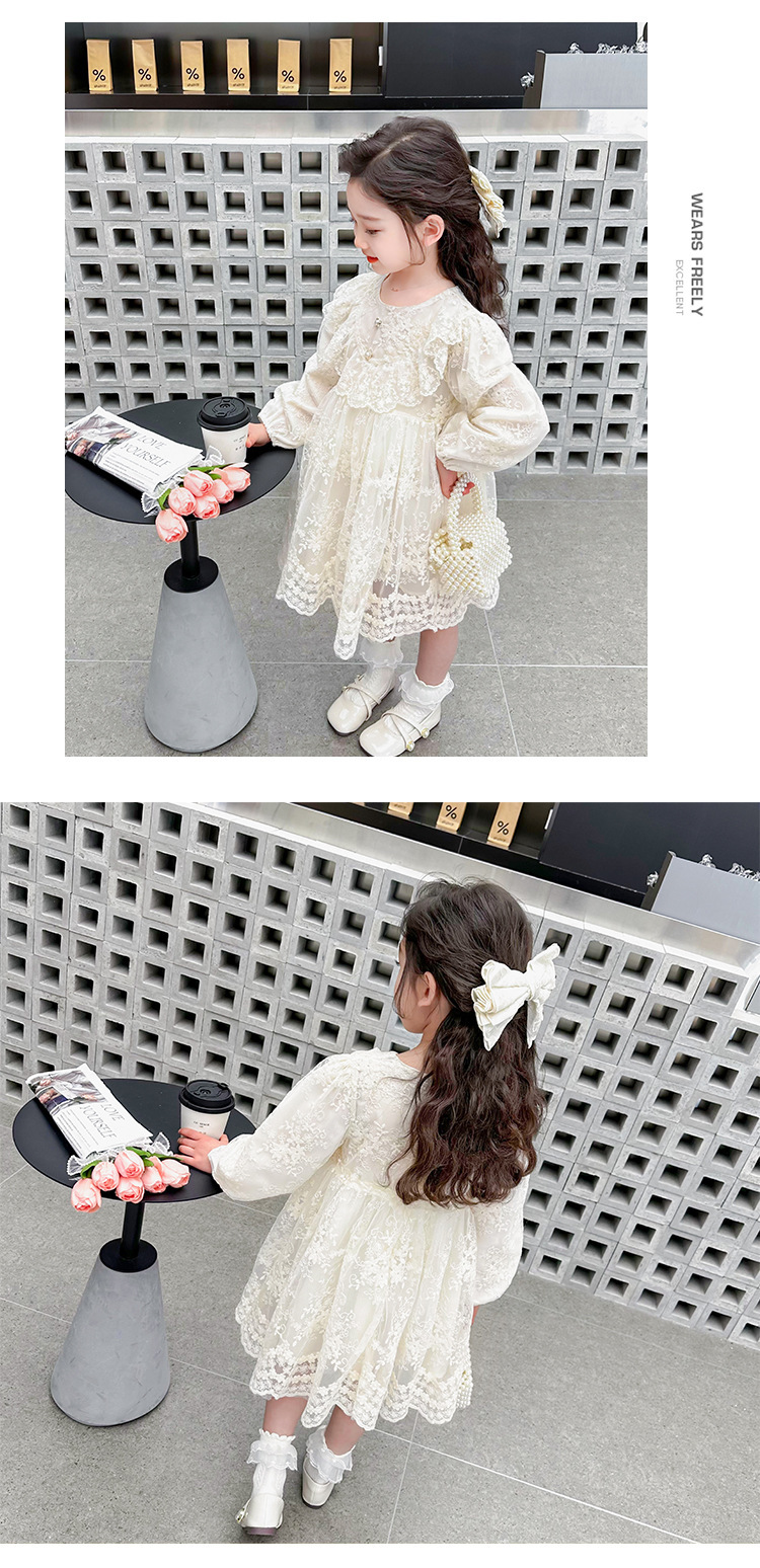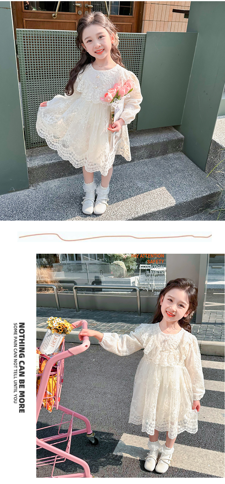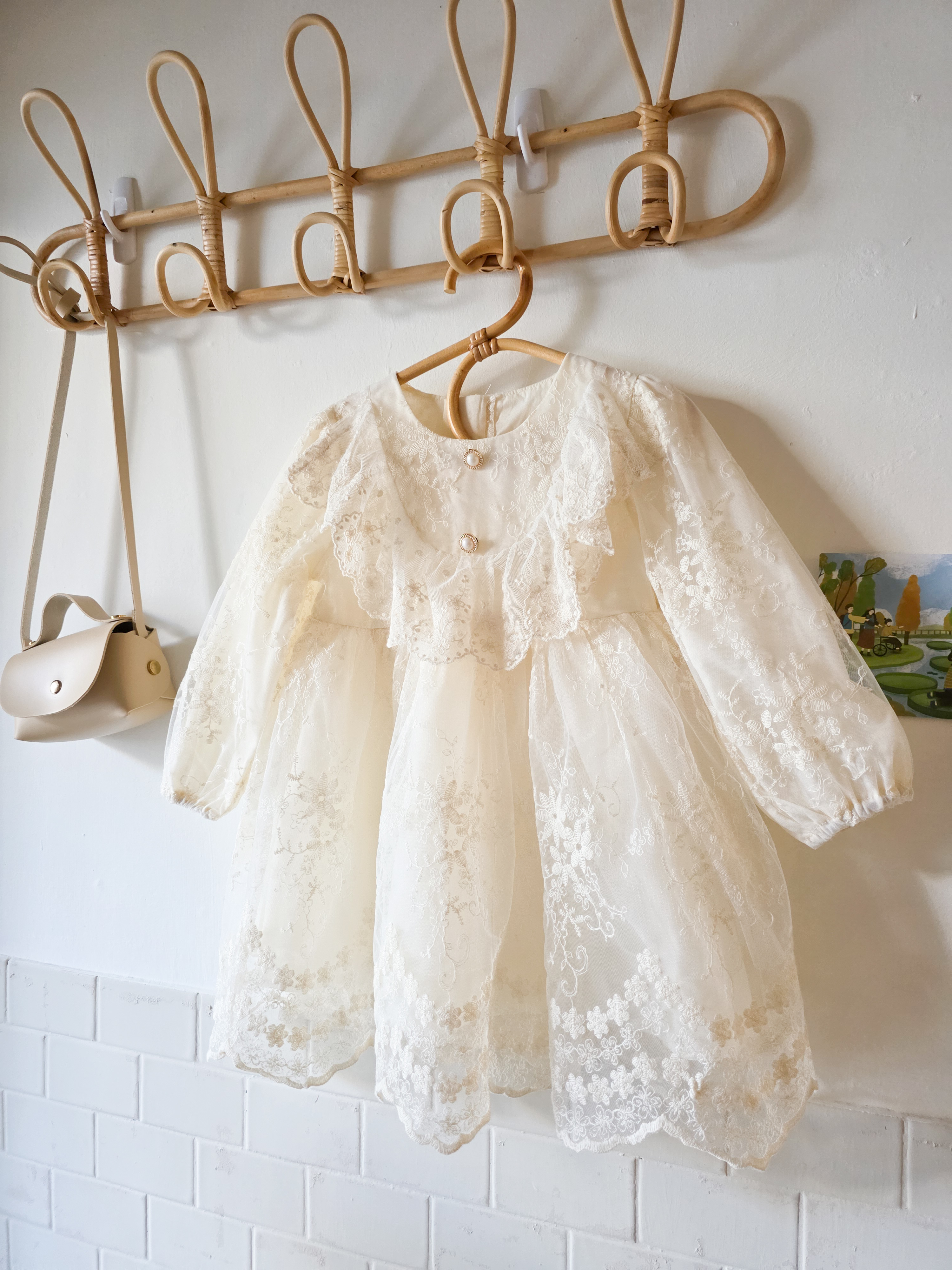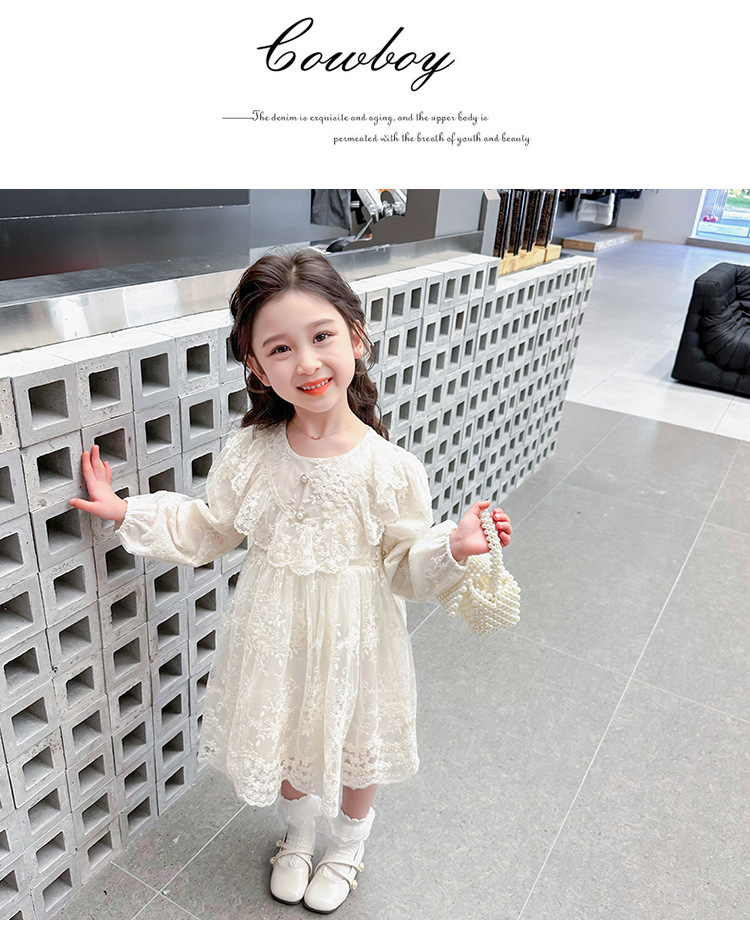 奶霜蕾絲花語 長袖洋裝/ 連身裙