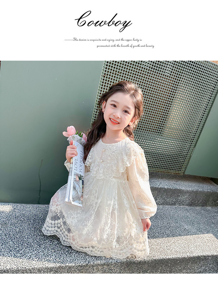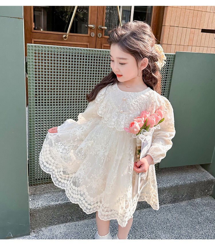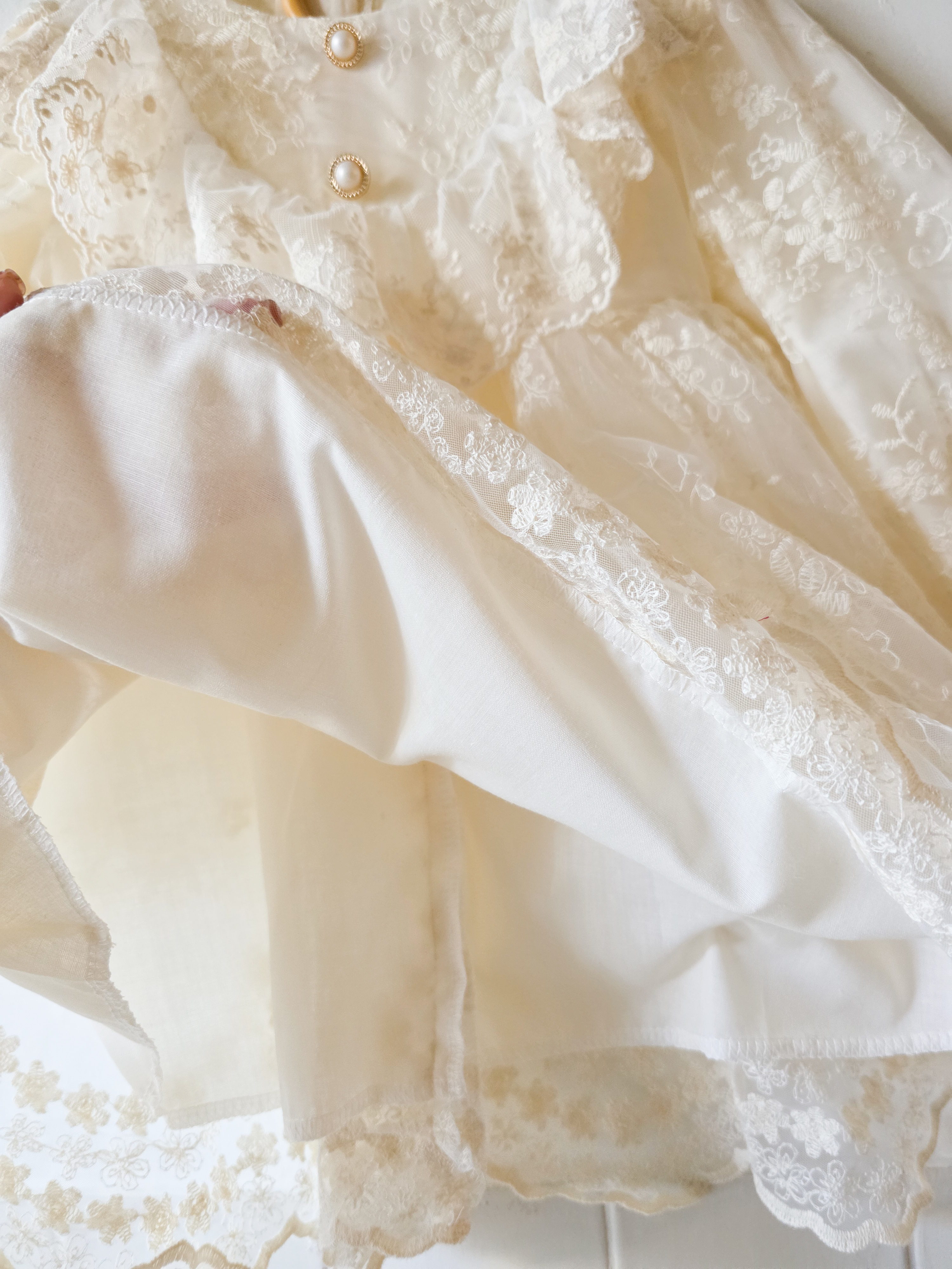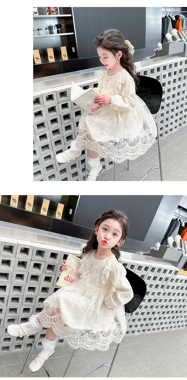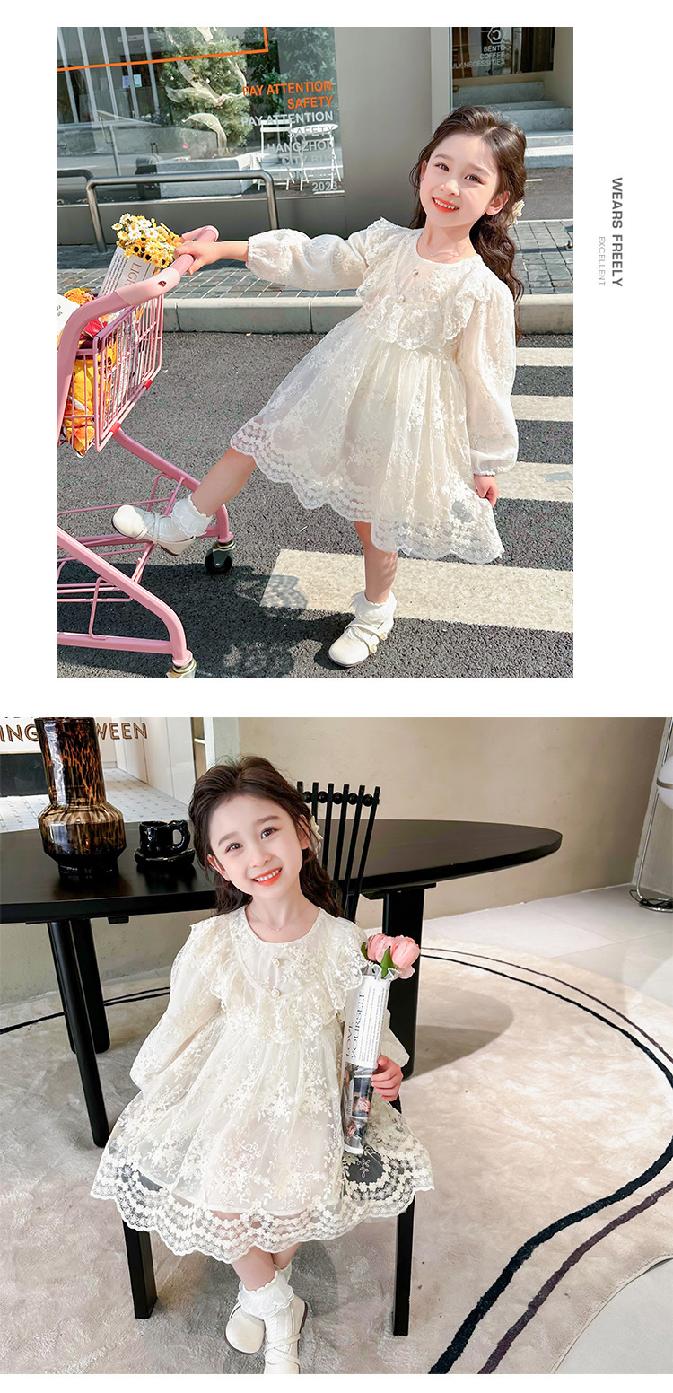 奶霜蕾絲花語 長袖洋裝/ 連身裙