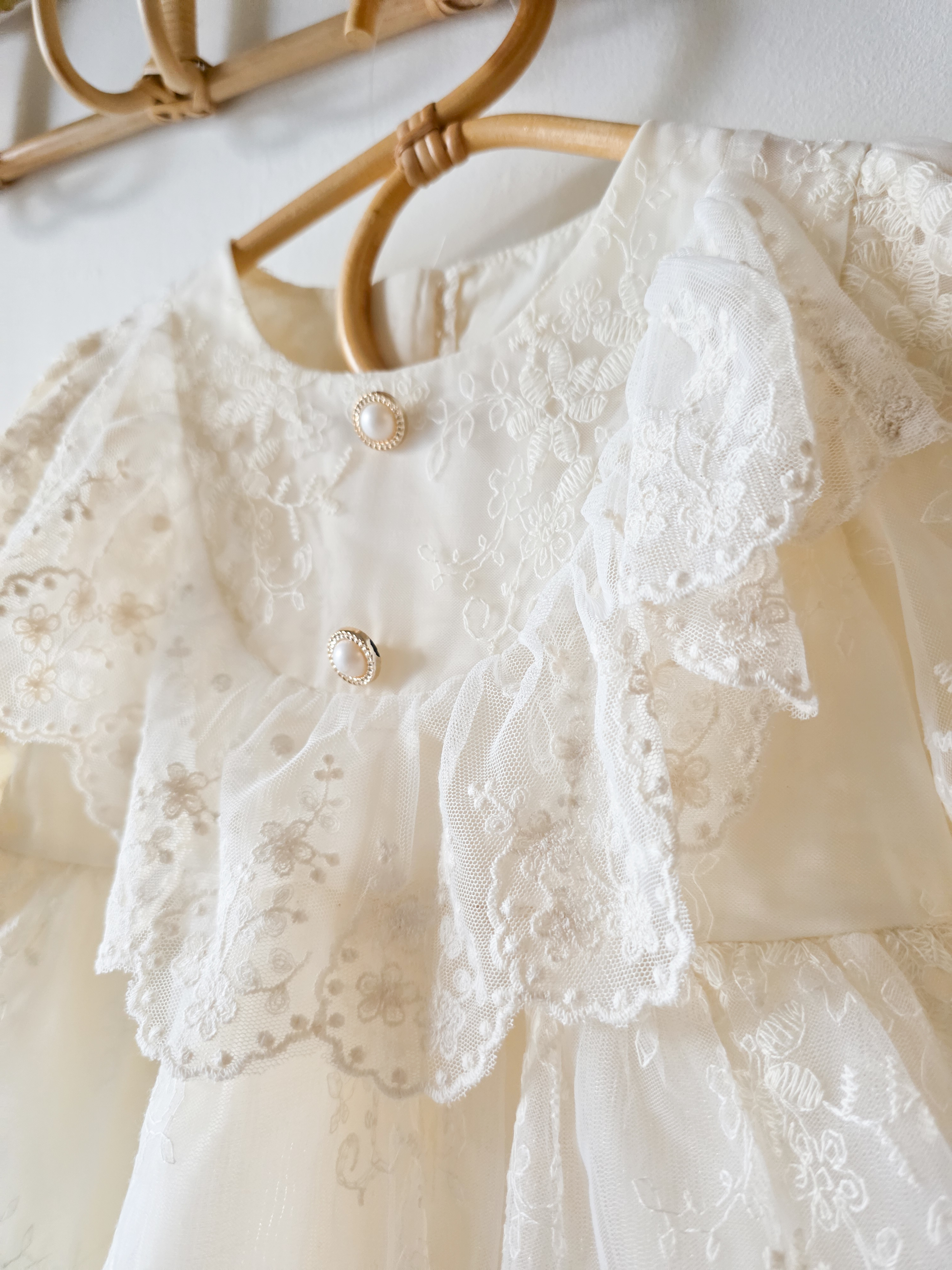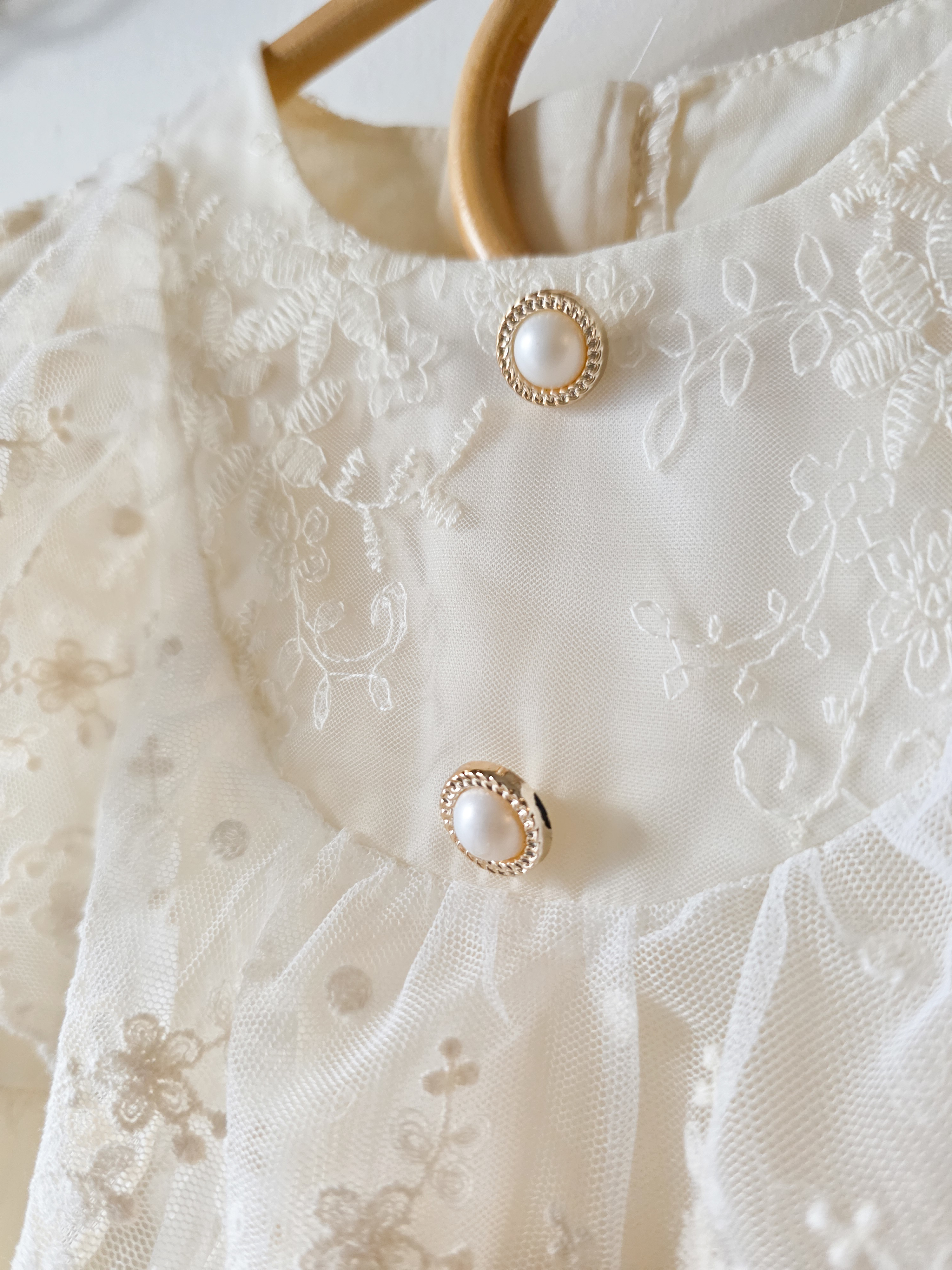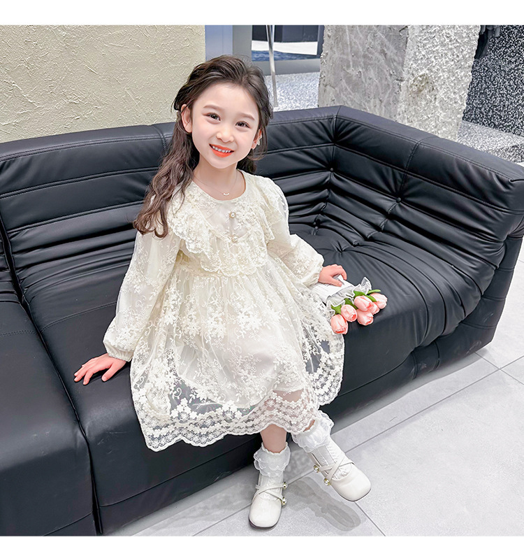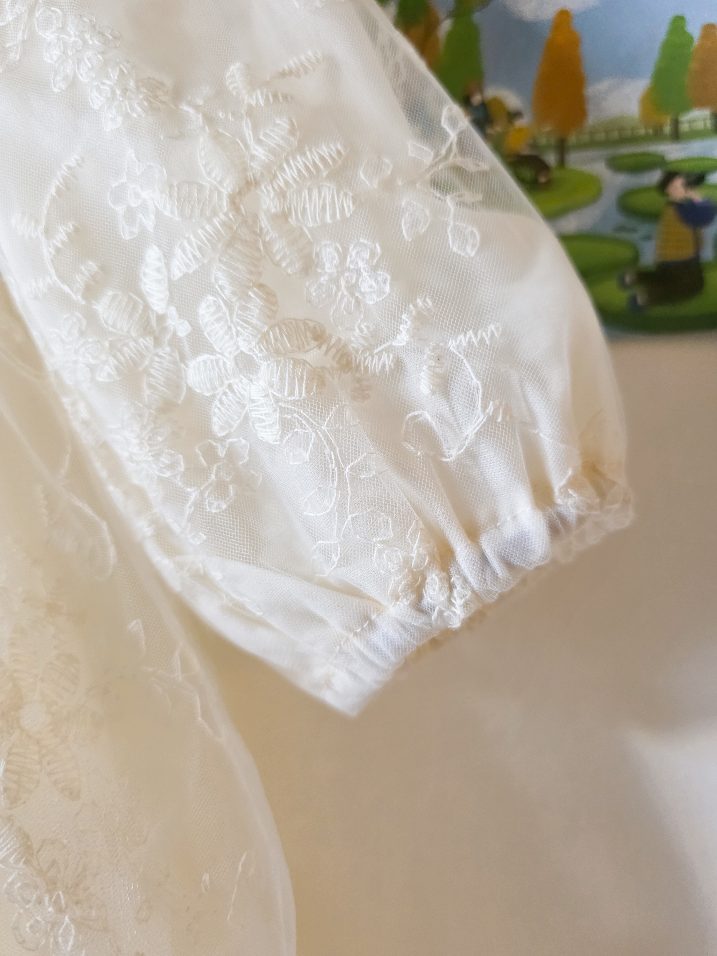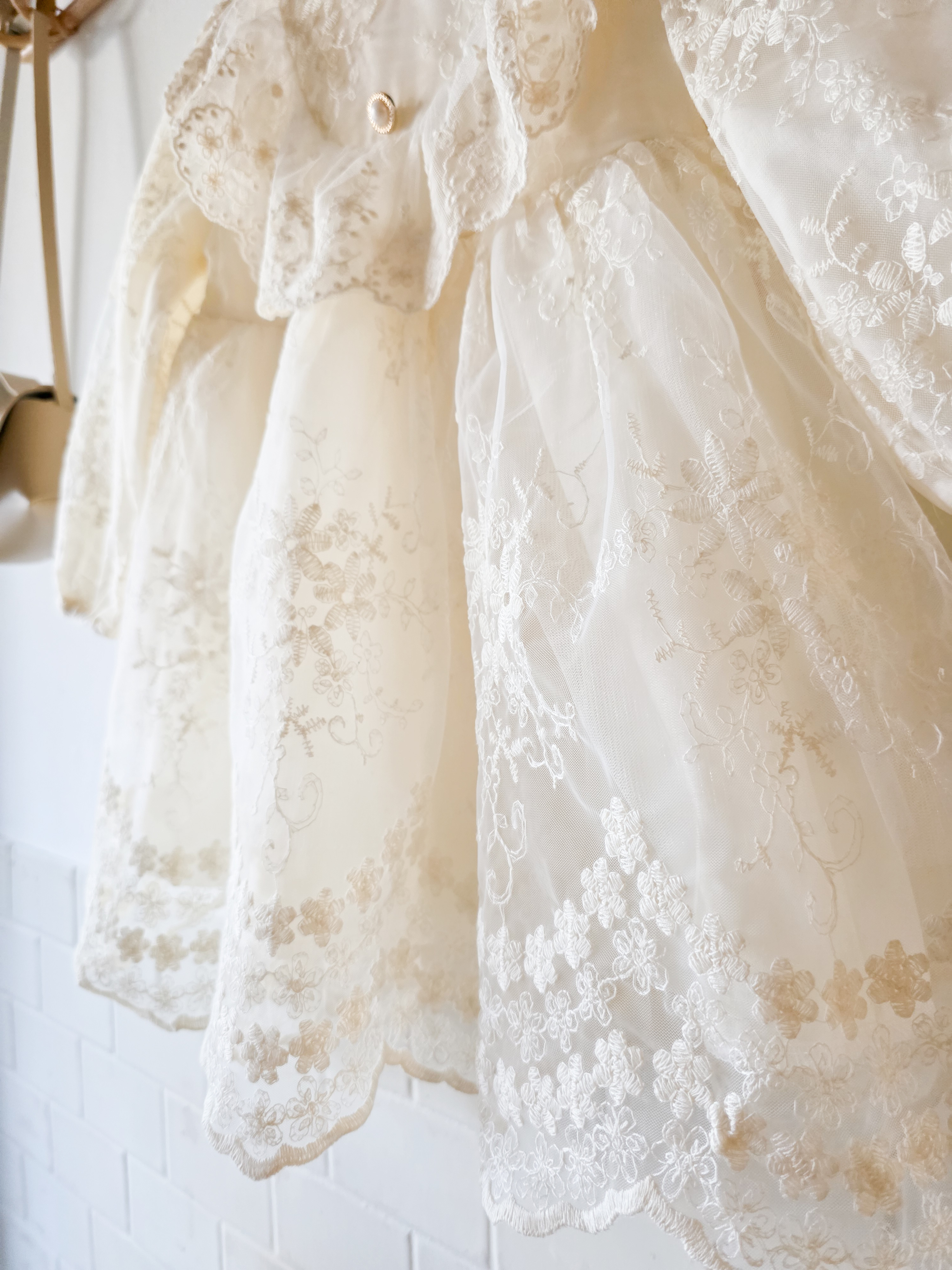 奶霜蕾絲花語 長袖洋裝/ 連身裙