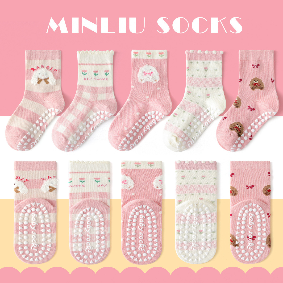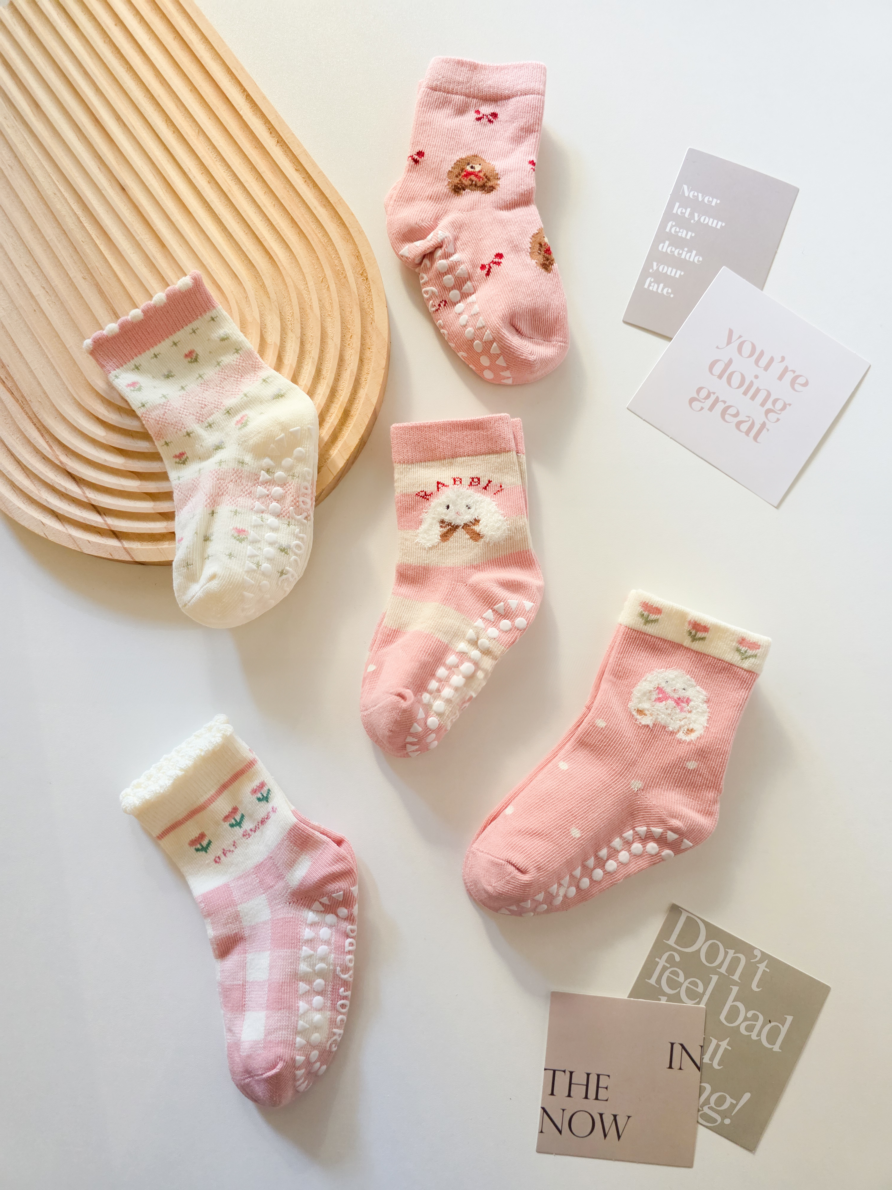 嫩粉兔兔碎花 短筒襪5双組