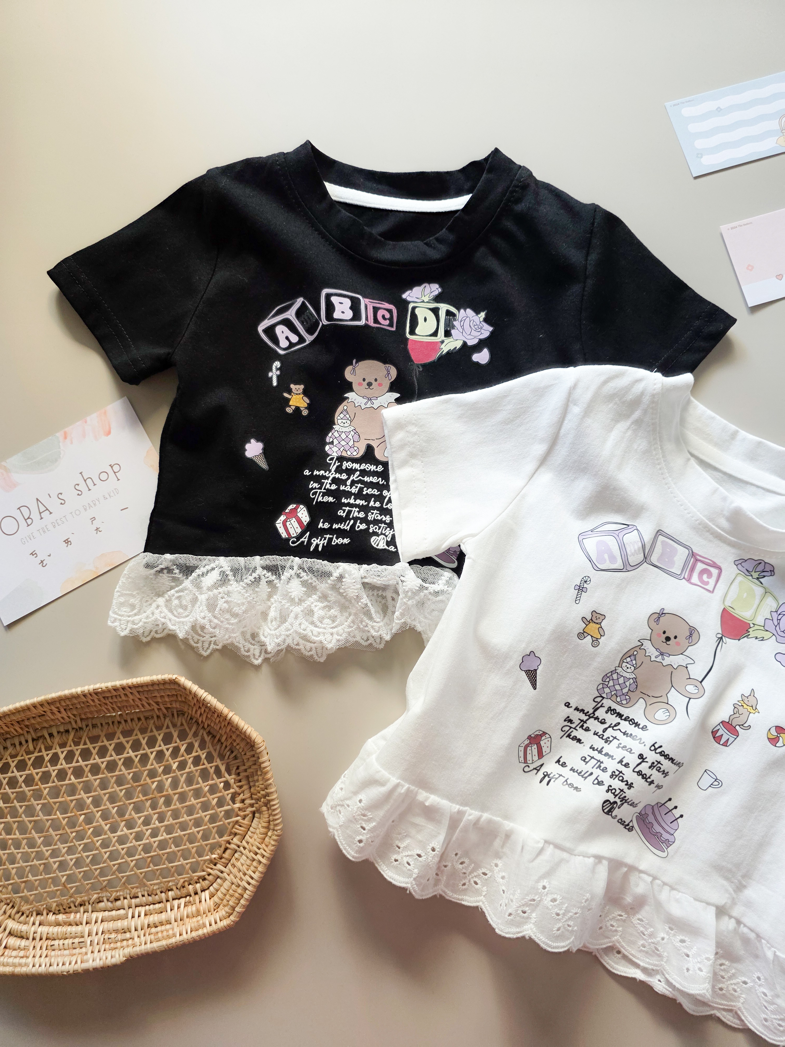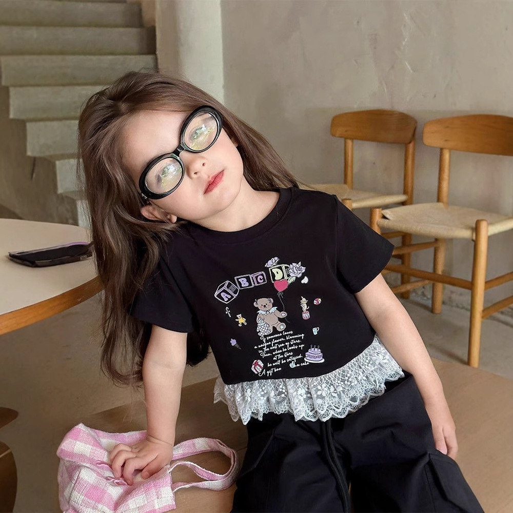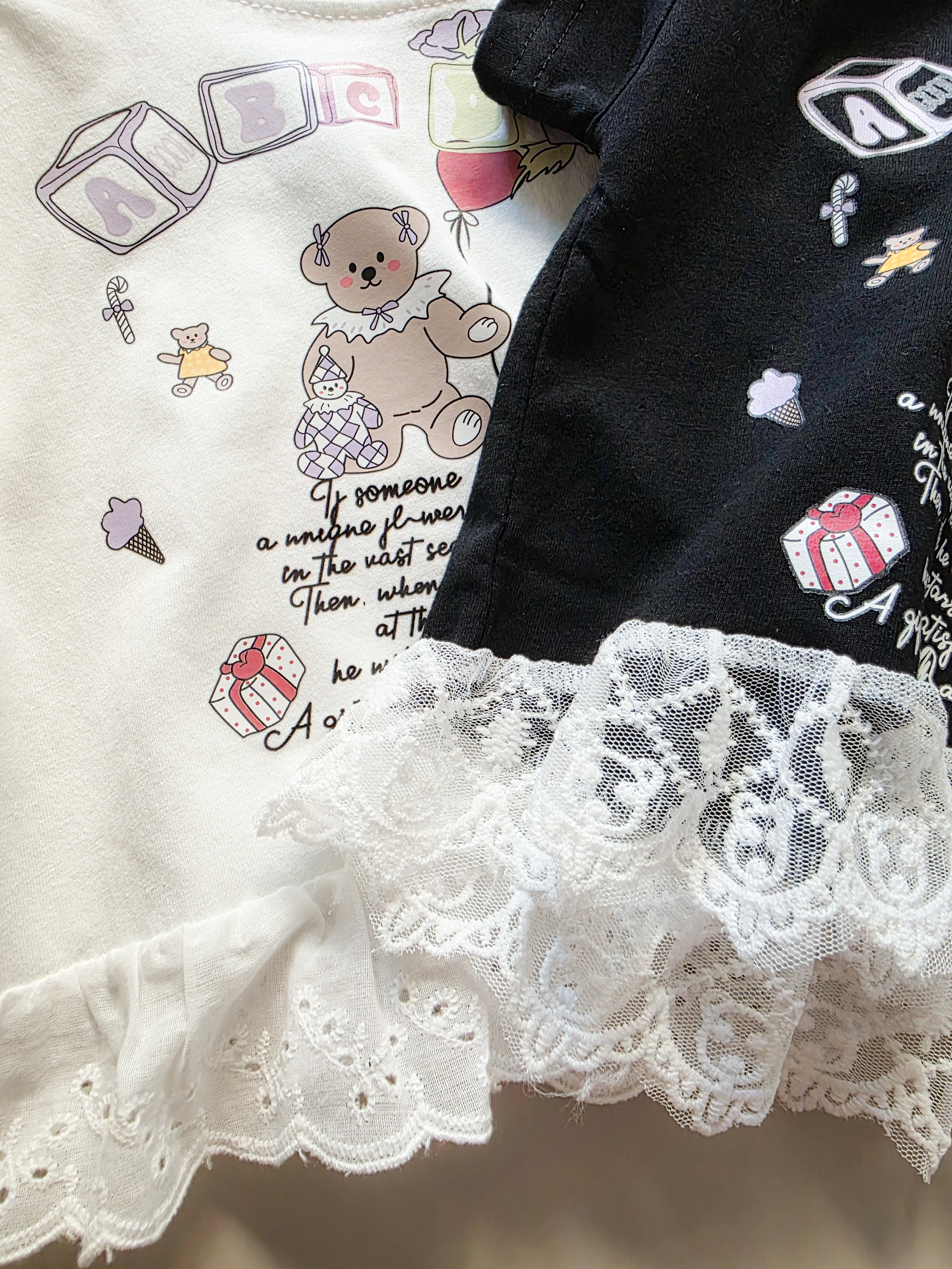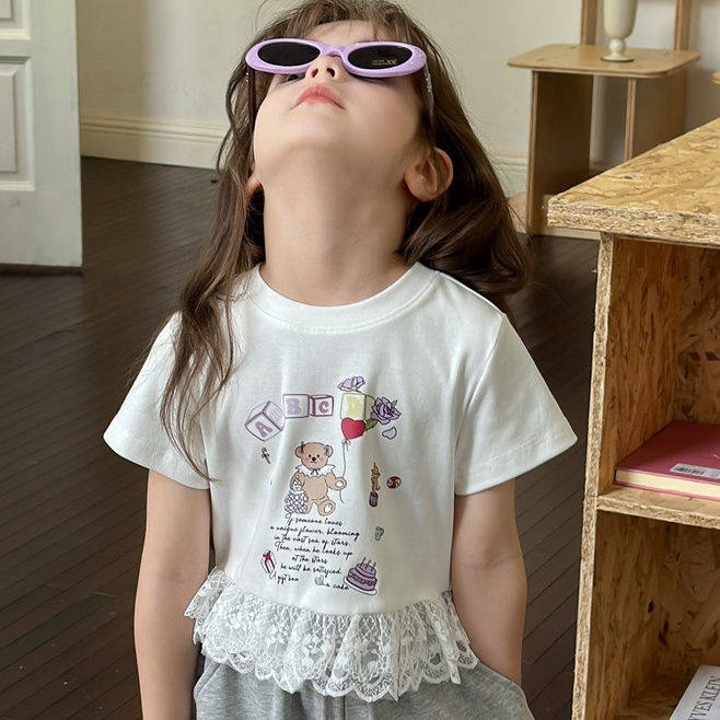 小熊童話蕾絲裙擺 短袖上衣