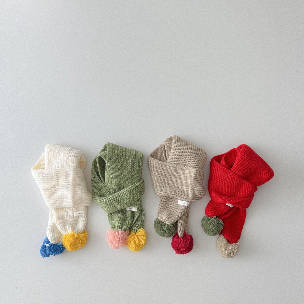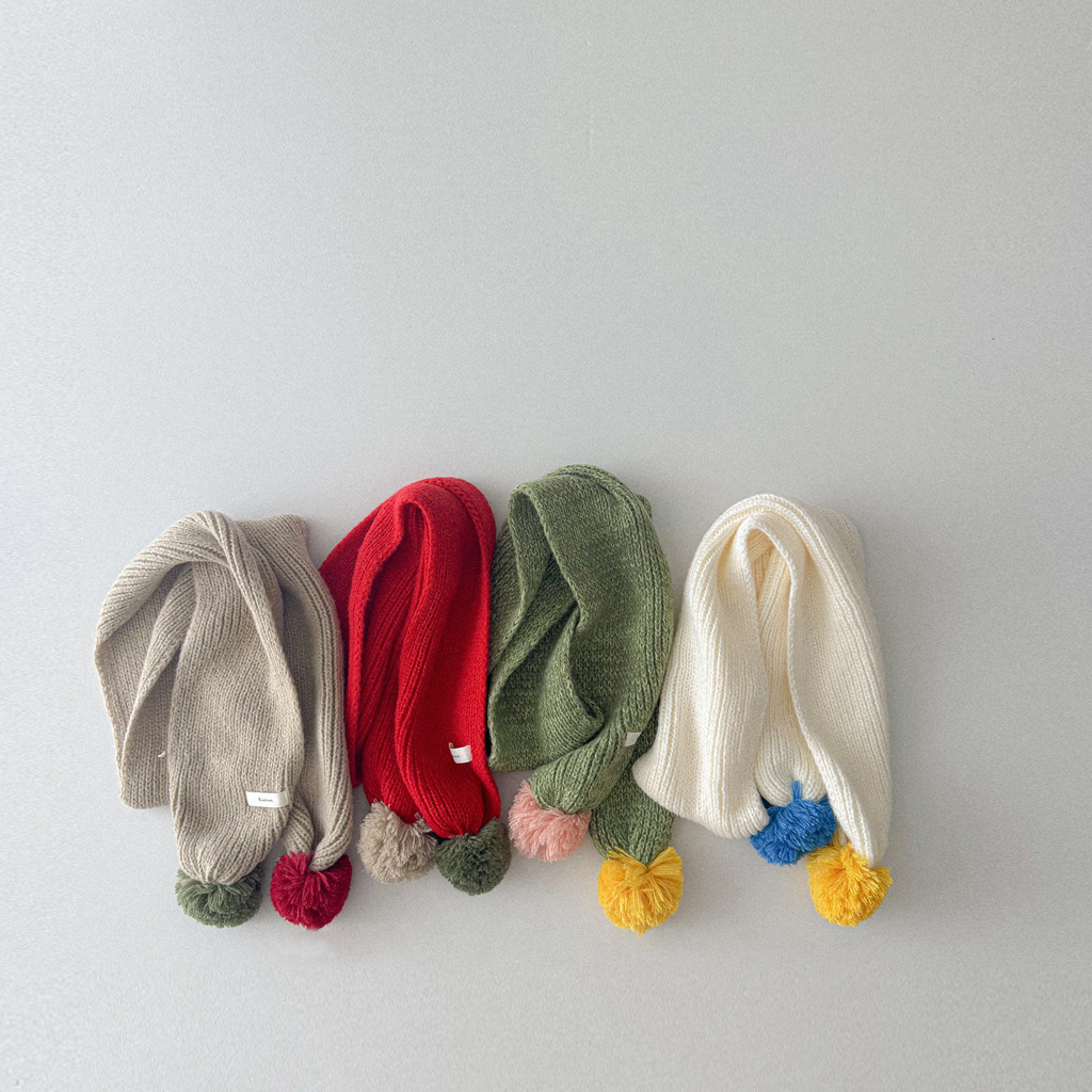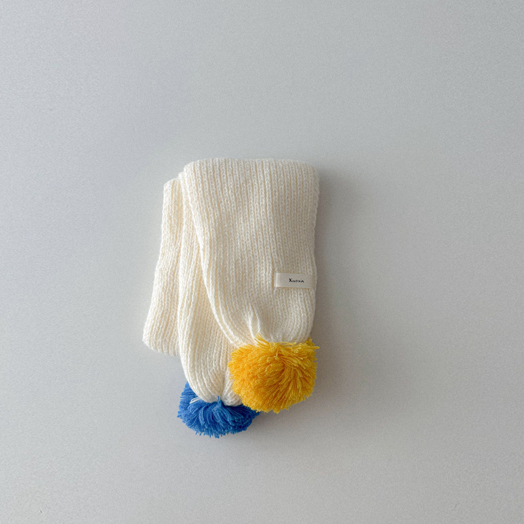 撞色彩球 圍巾