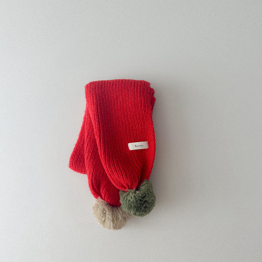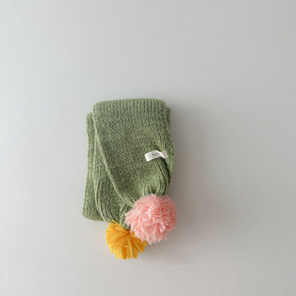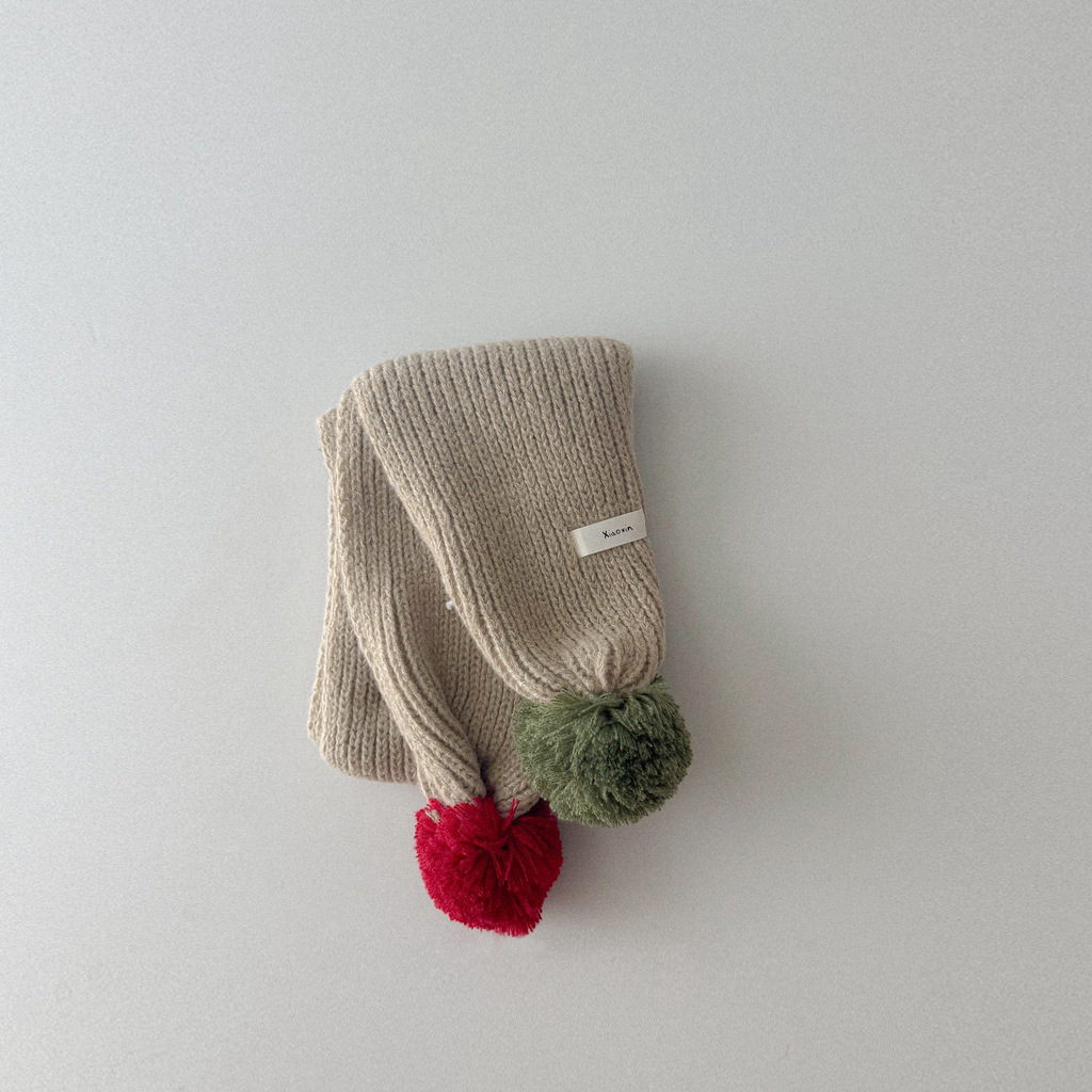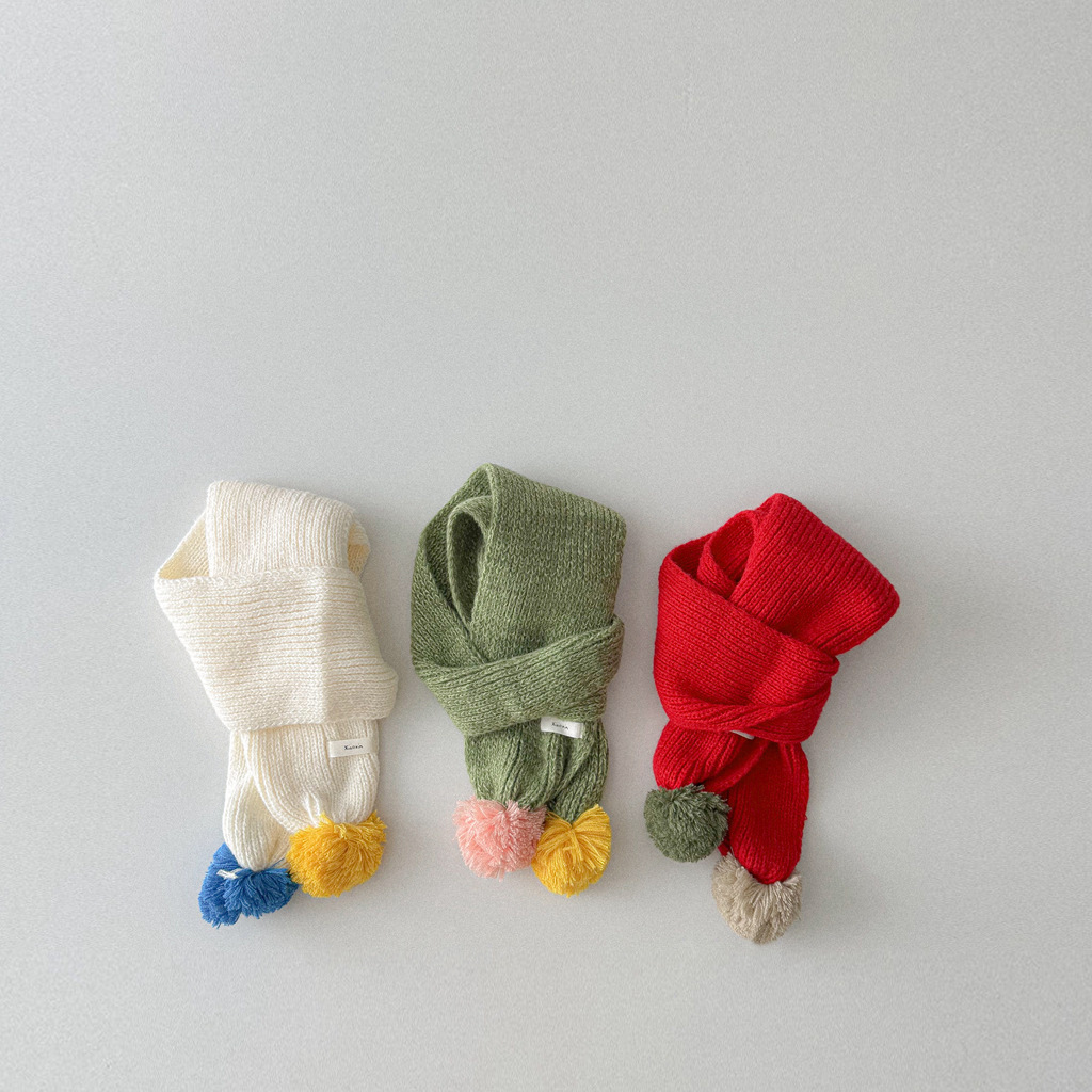撞色彩球 圍巾