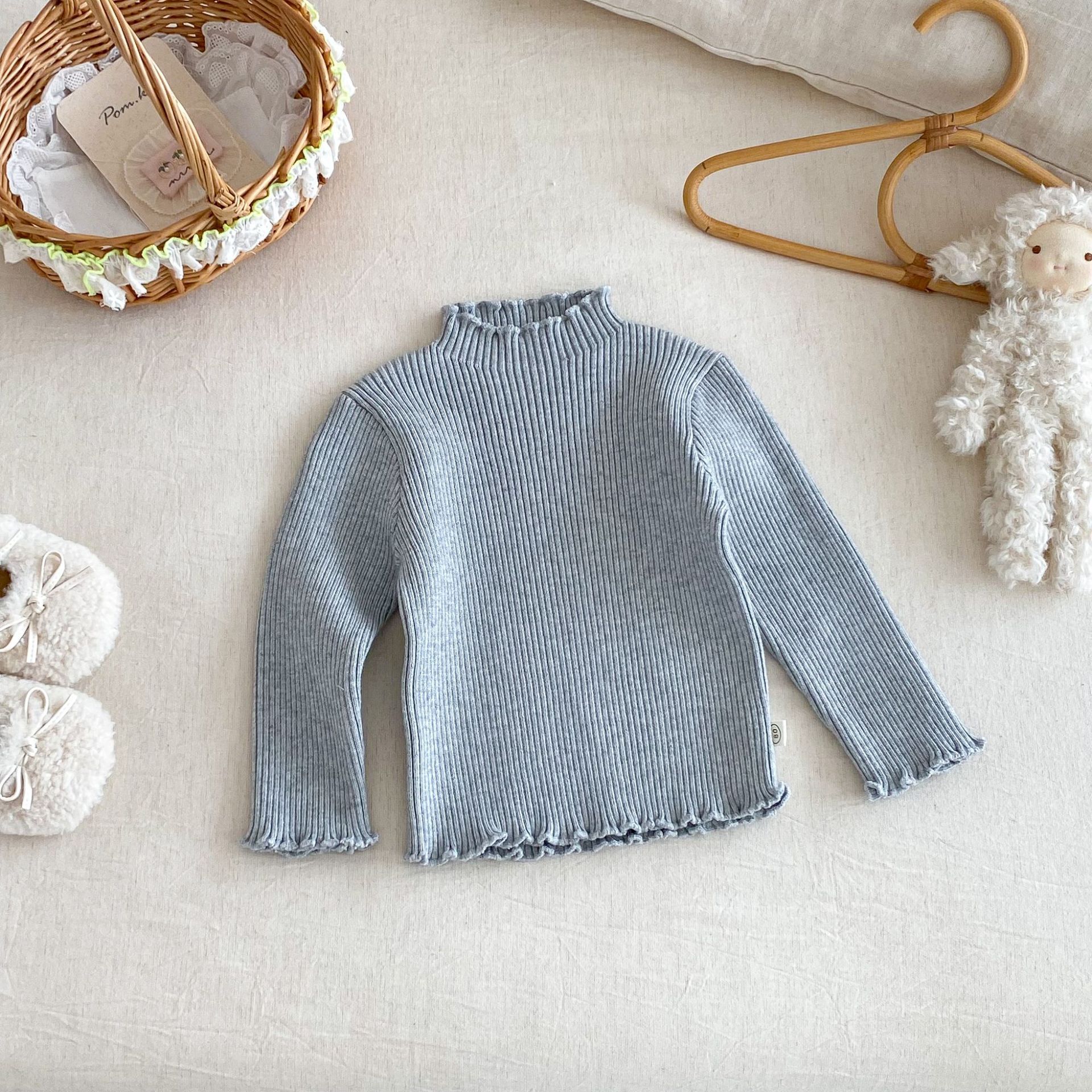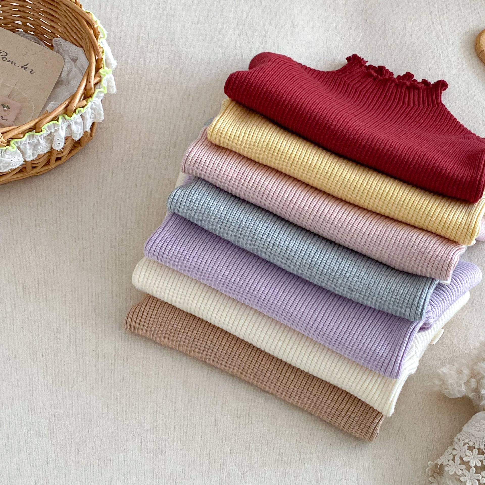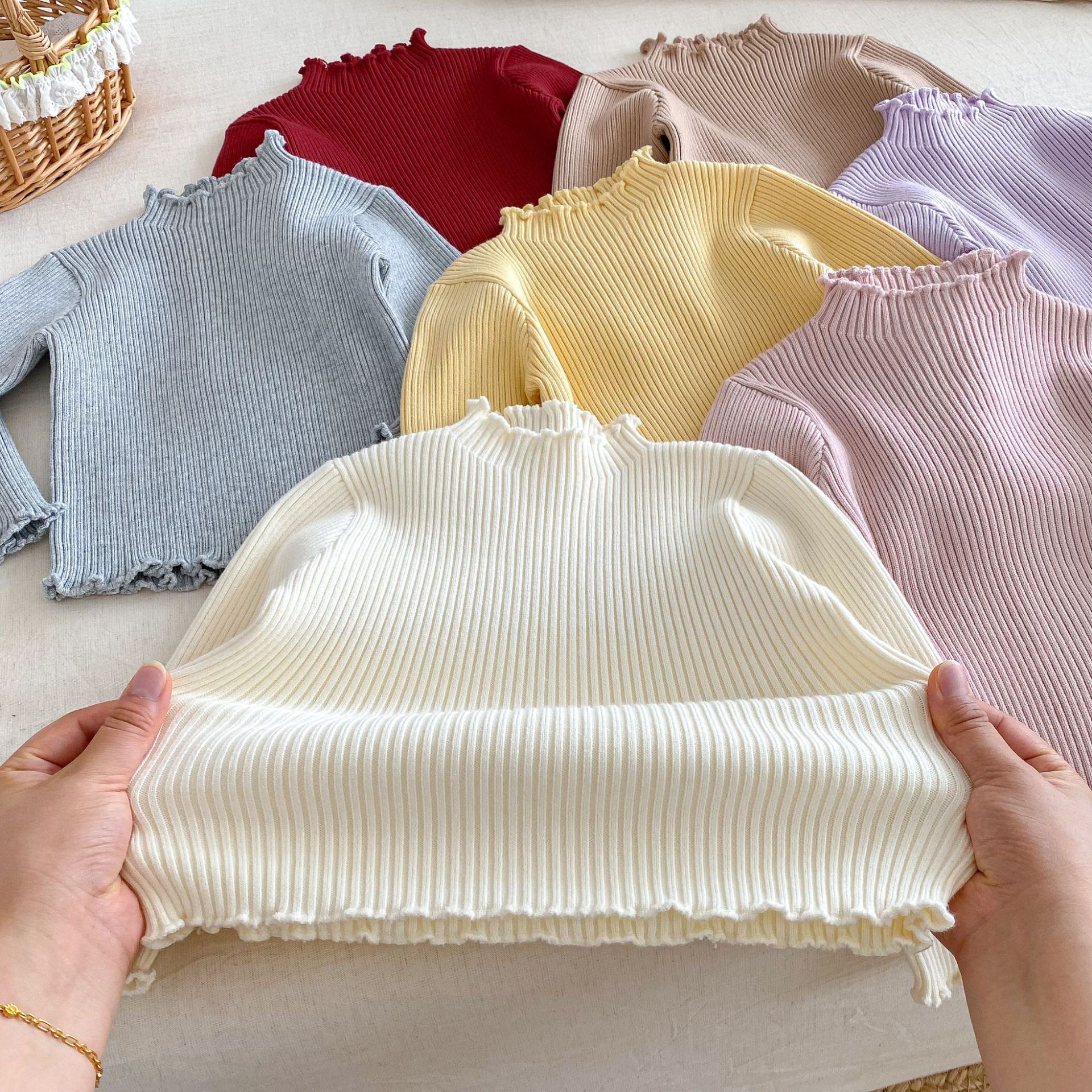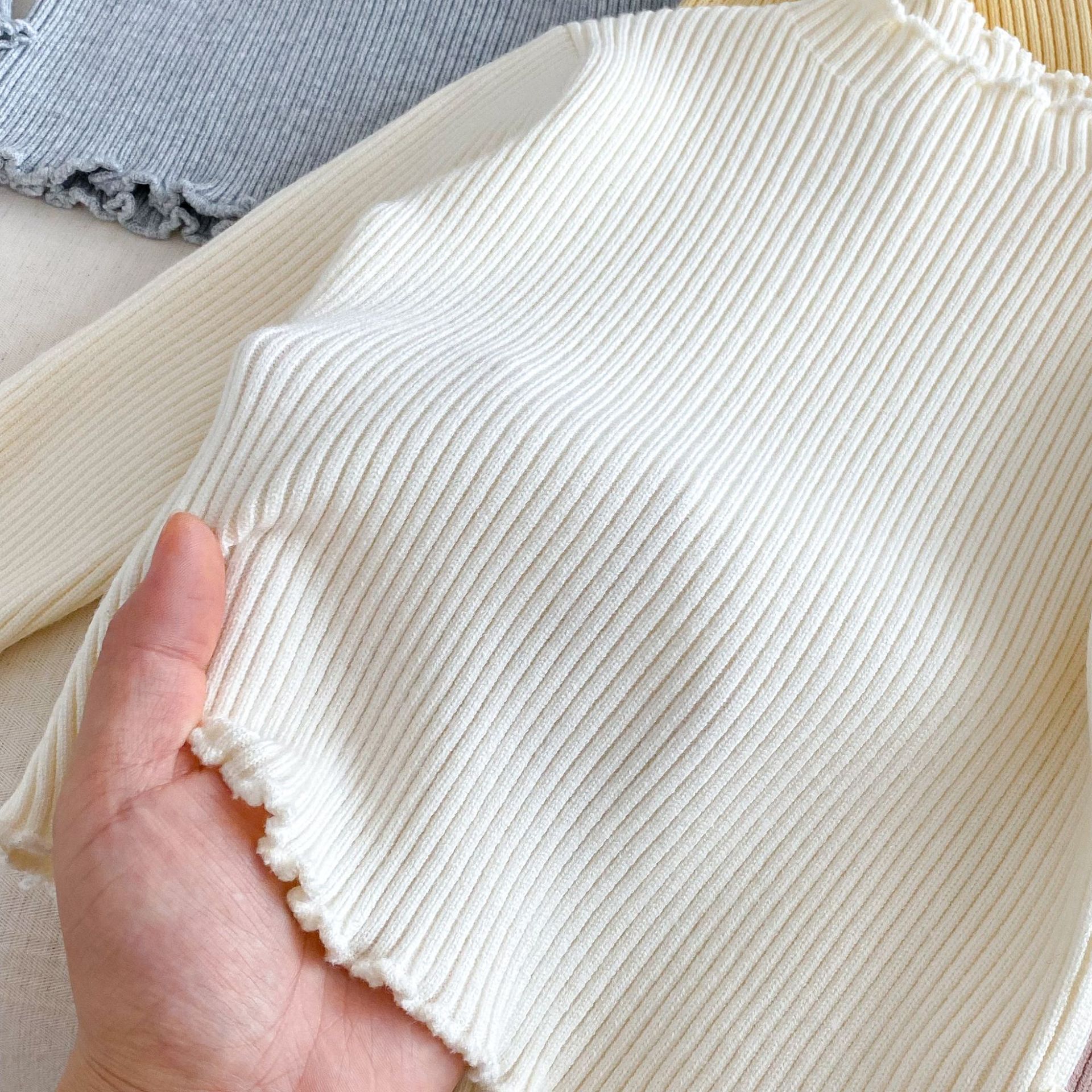 木耳邊彈力內搭 針織上衣