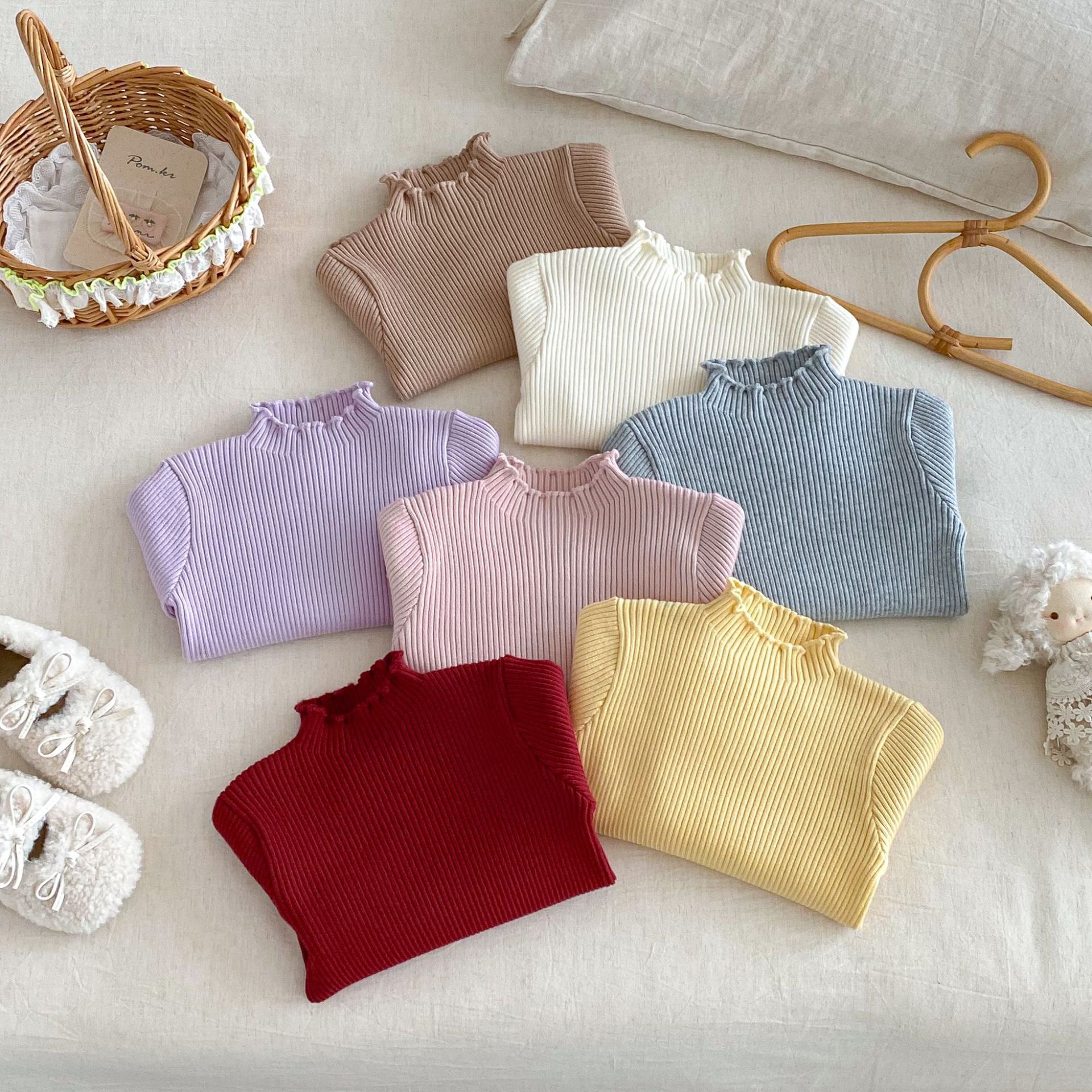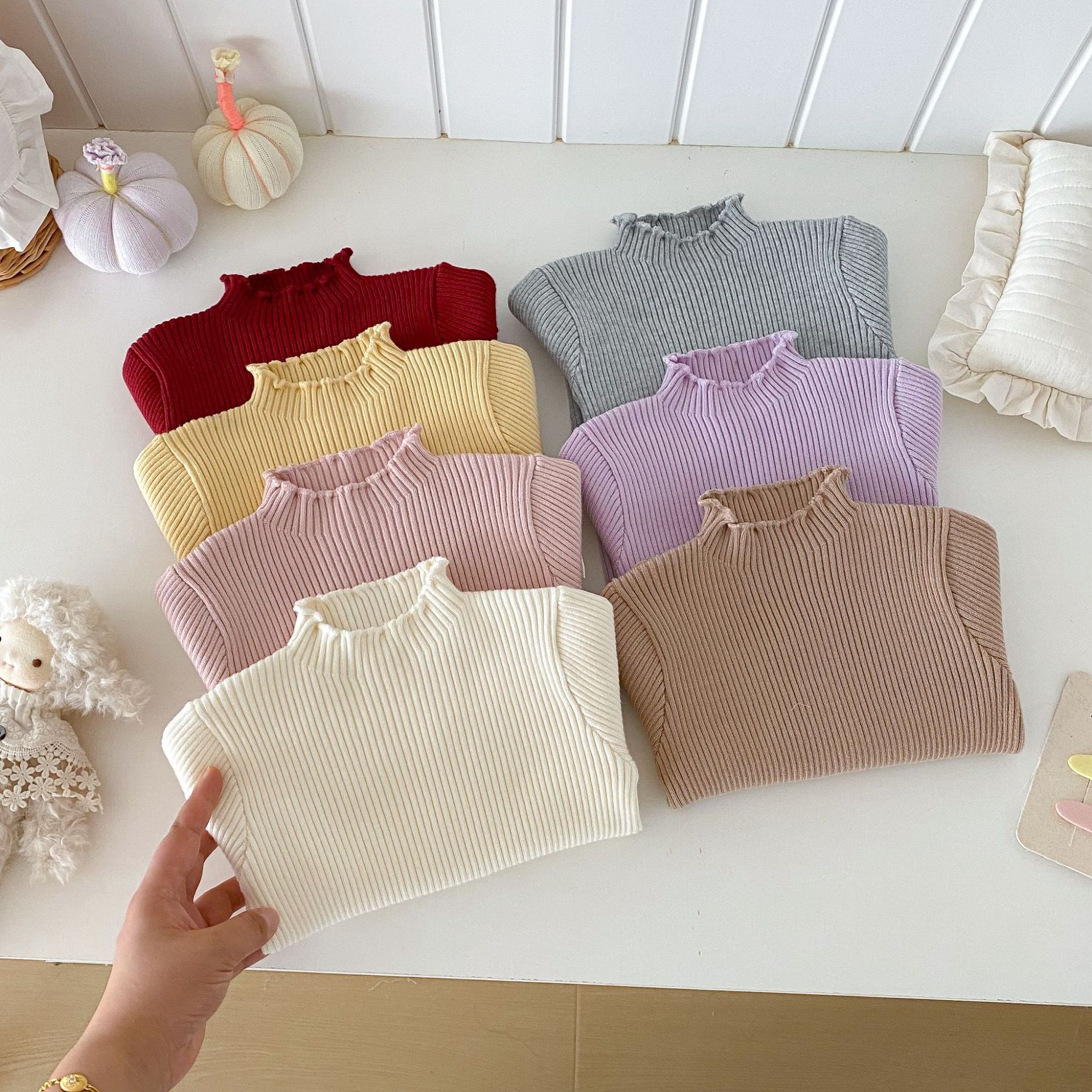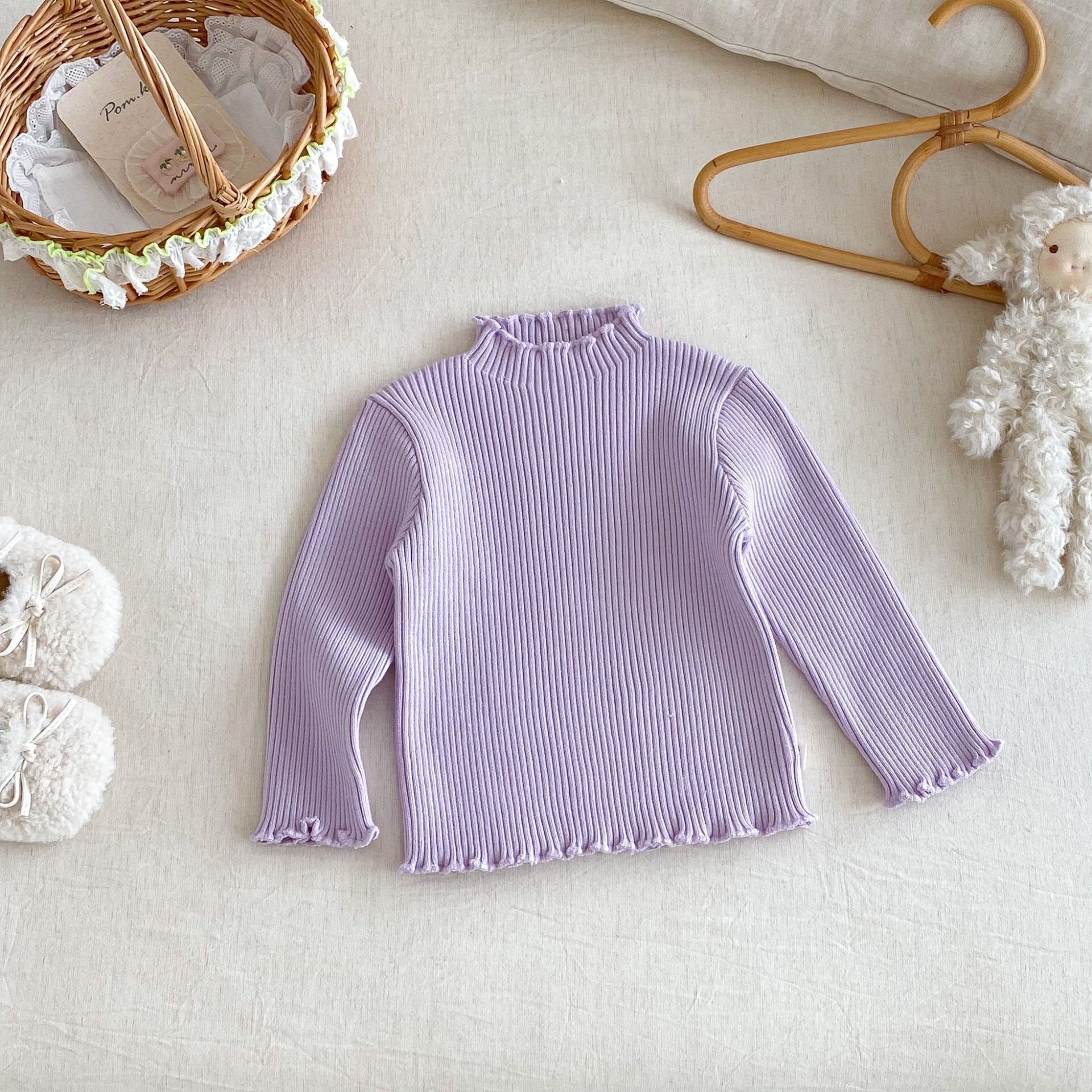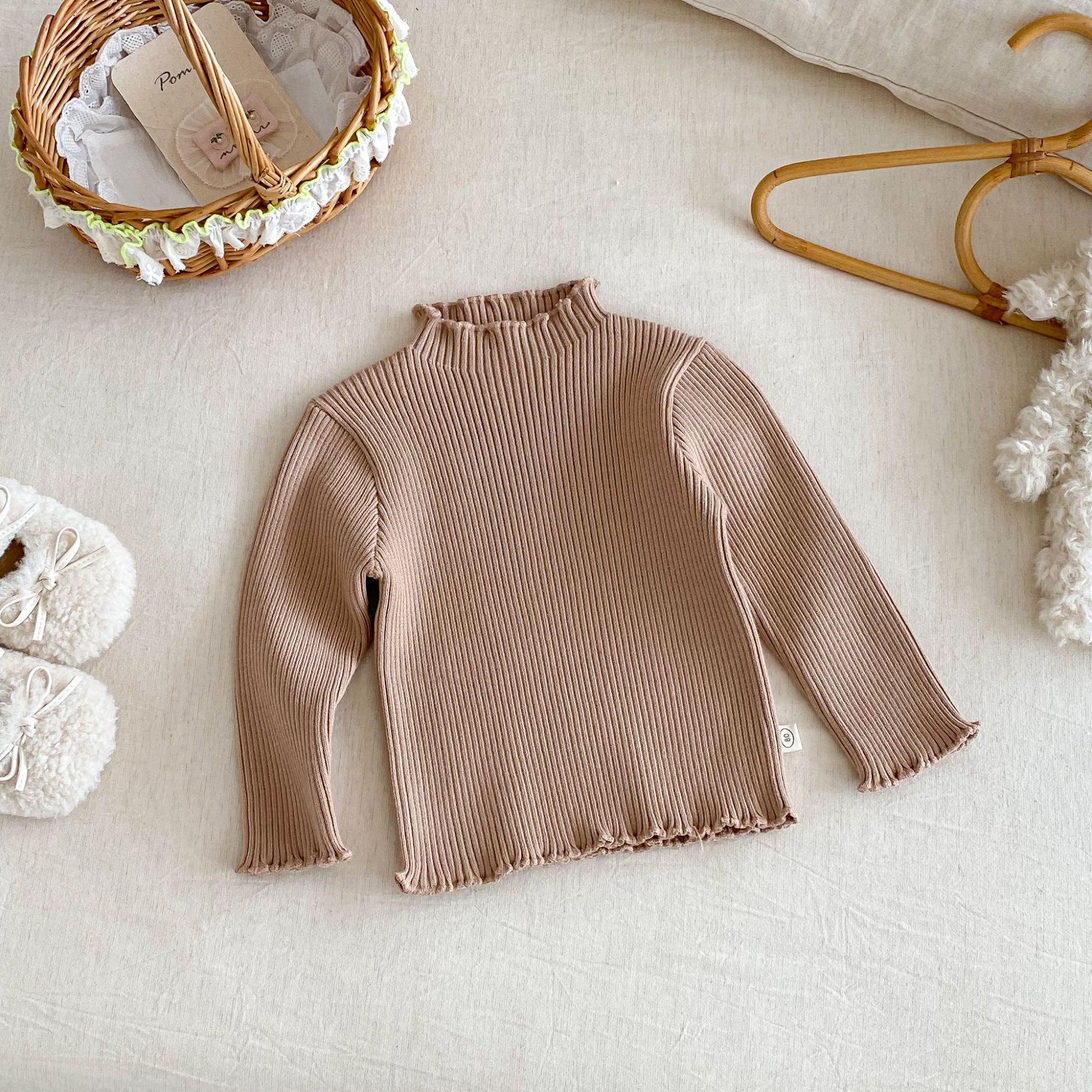 木耳邊彈力內搭 針織上衣