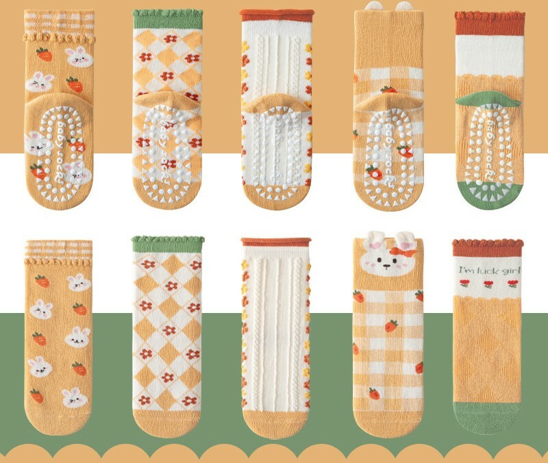 橘黃小兔子-春秋兒童止滑襪子5雙入