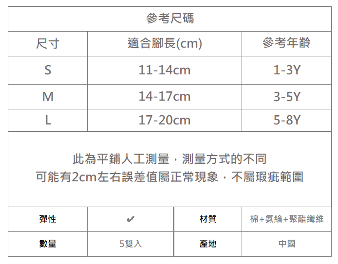 ▉ 內容物:襪子5雙入
