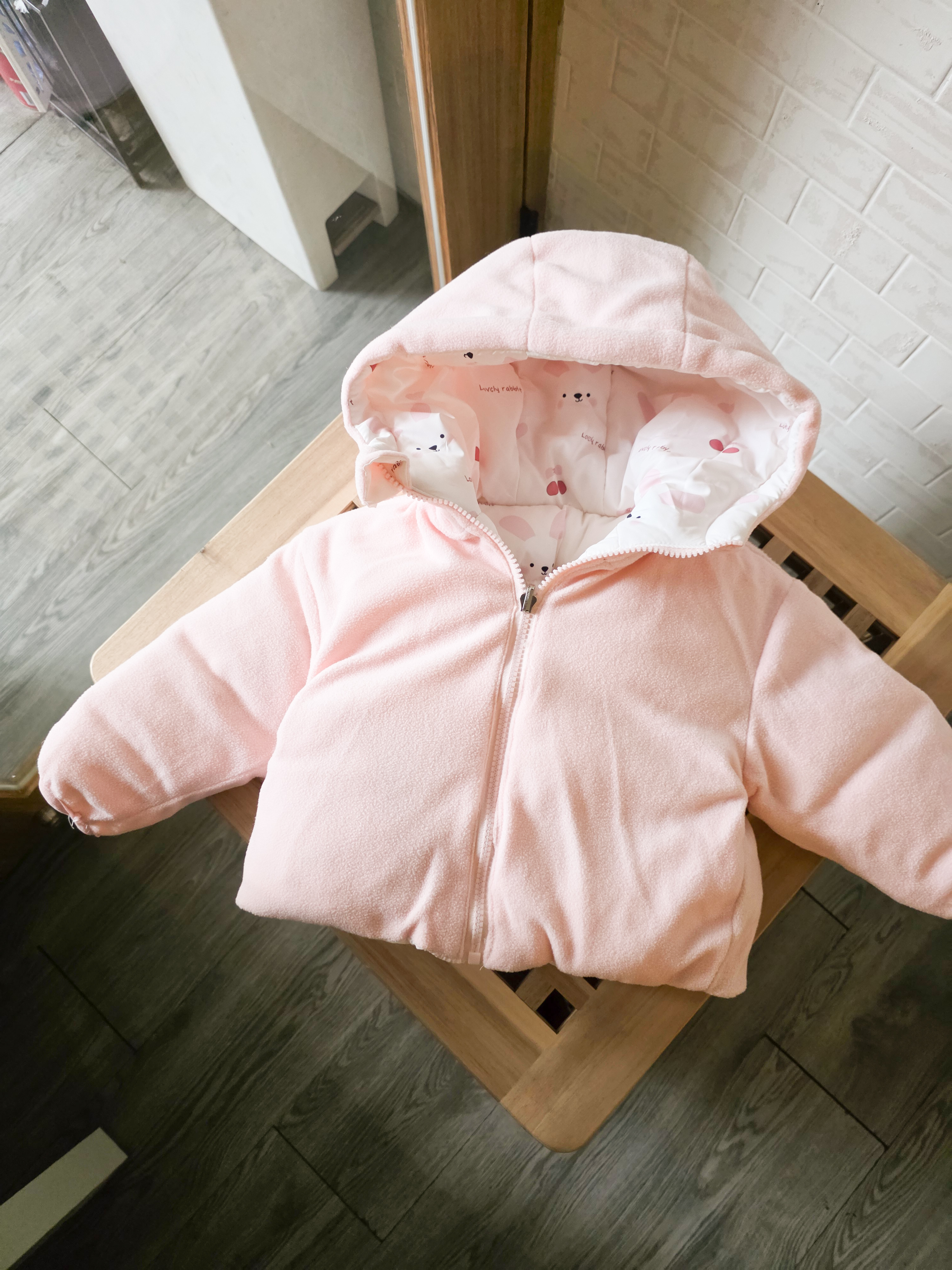 淺粉兔兔 雙面穿加絨外套
