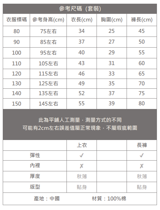 下單前務必參考尺碼表上建議身高。