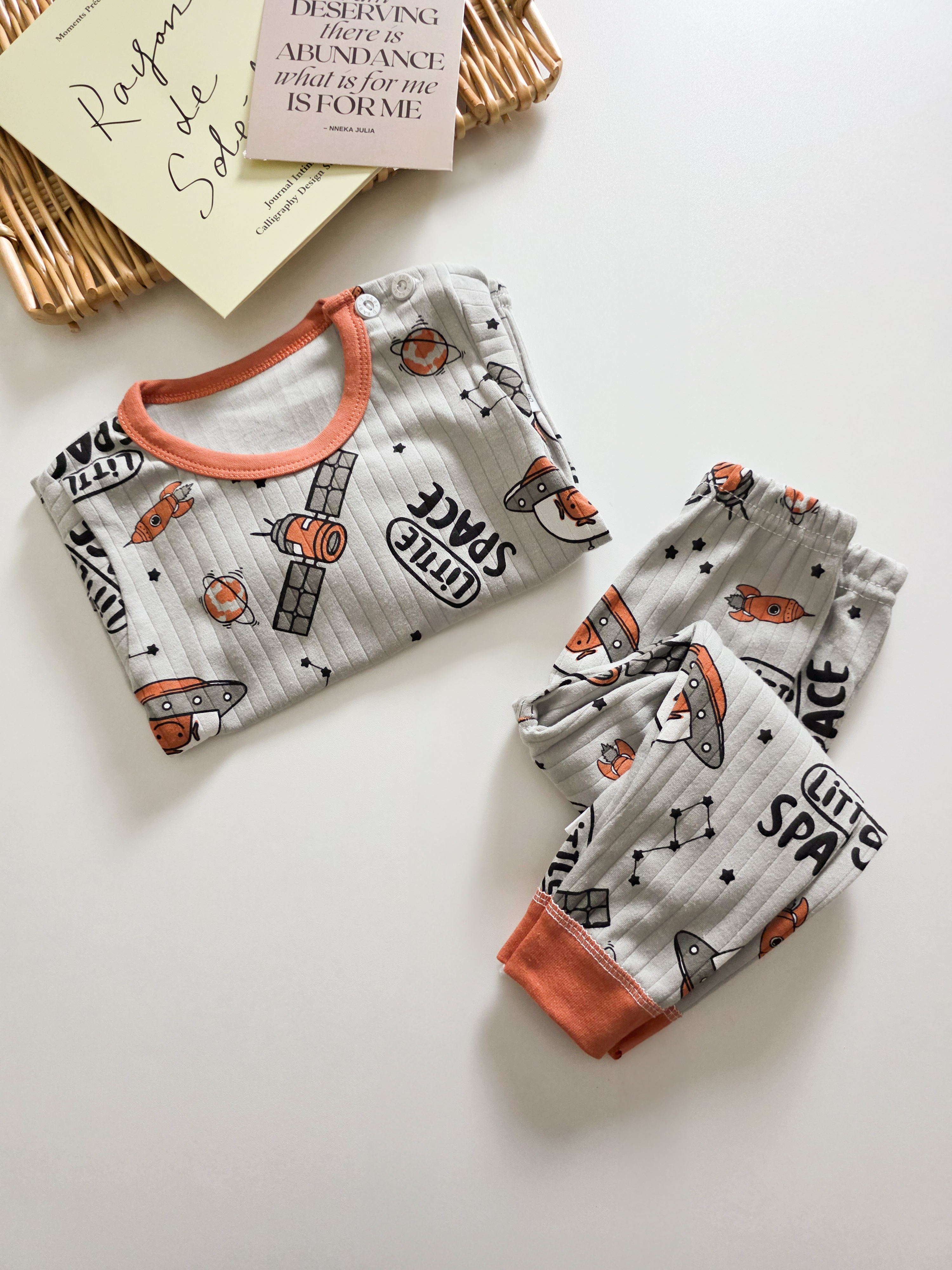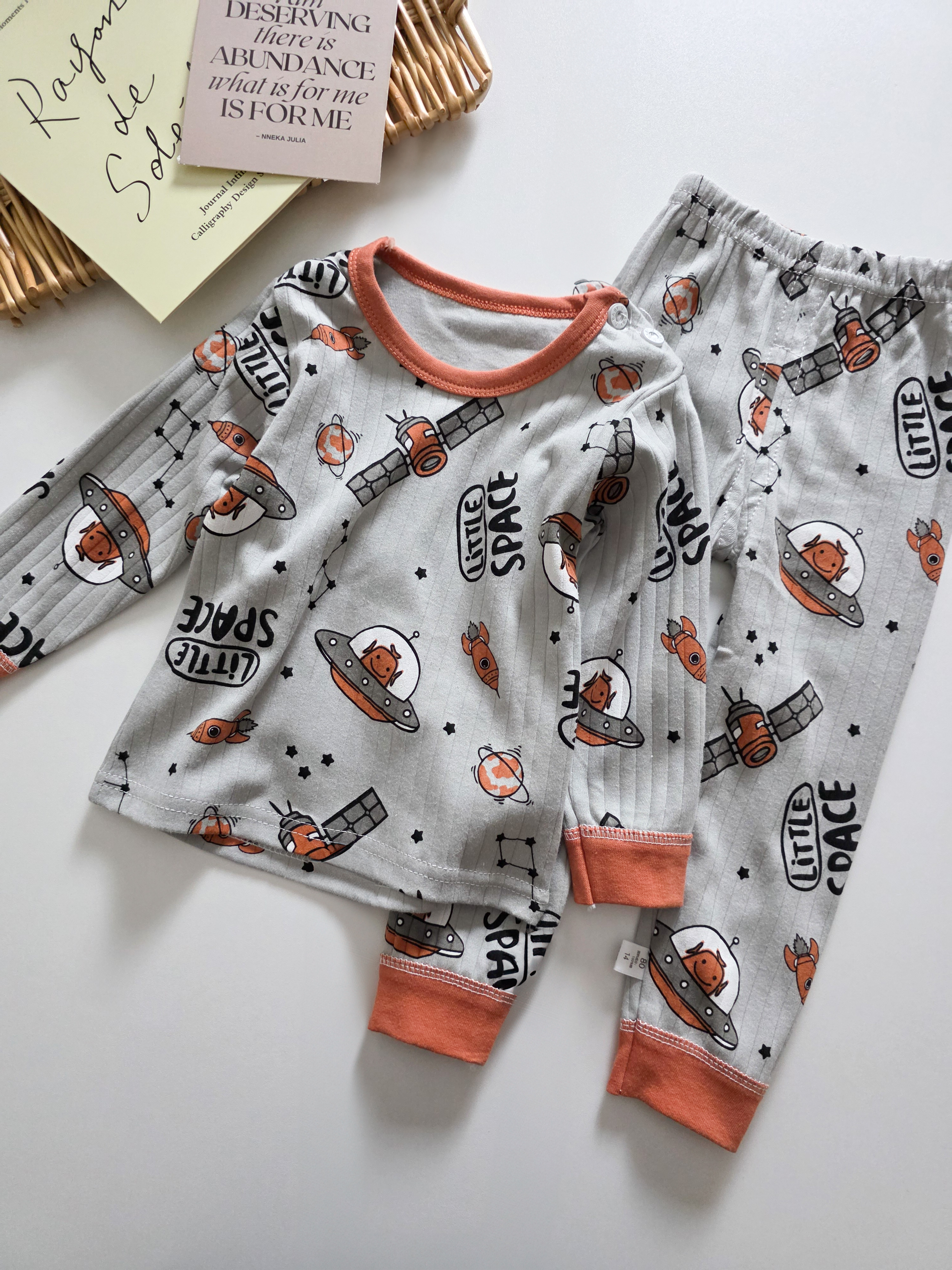 灰橘小太空 長袖居家套裝/睡衣