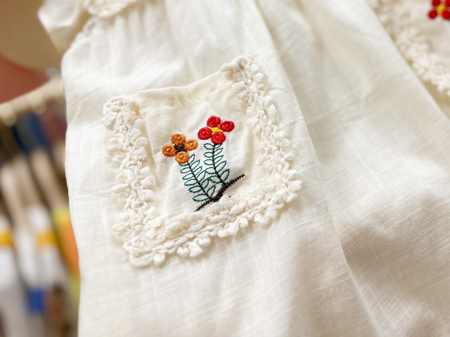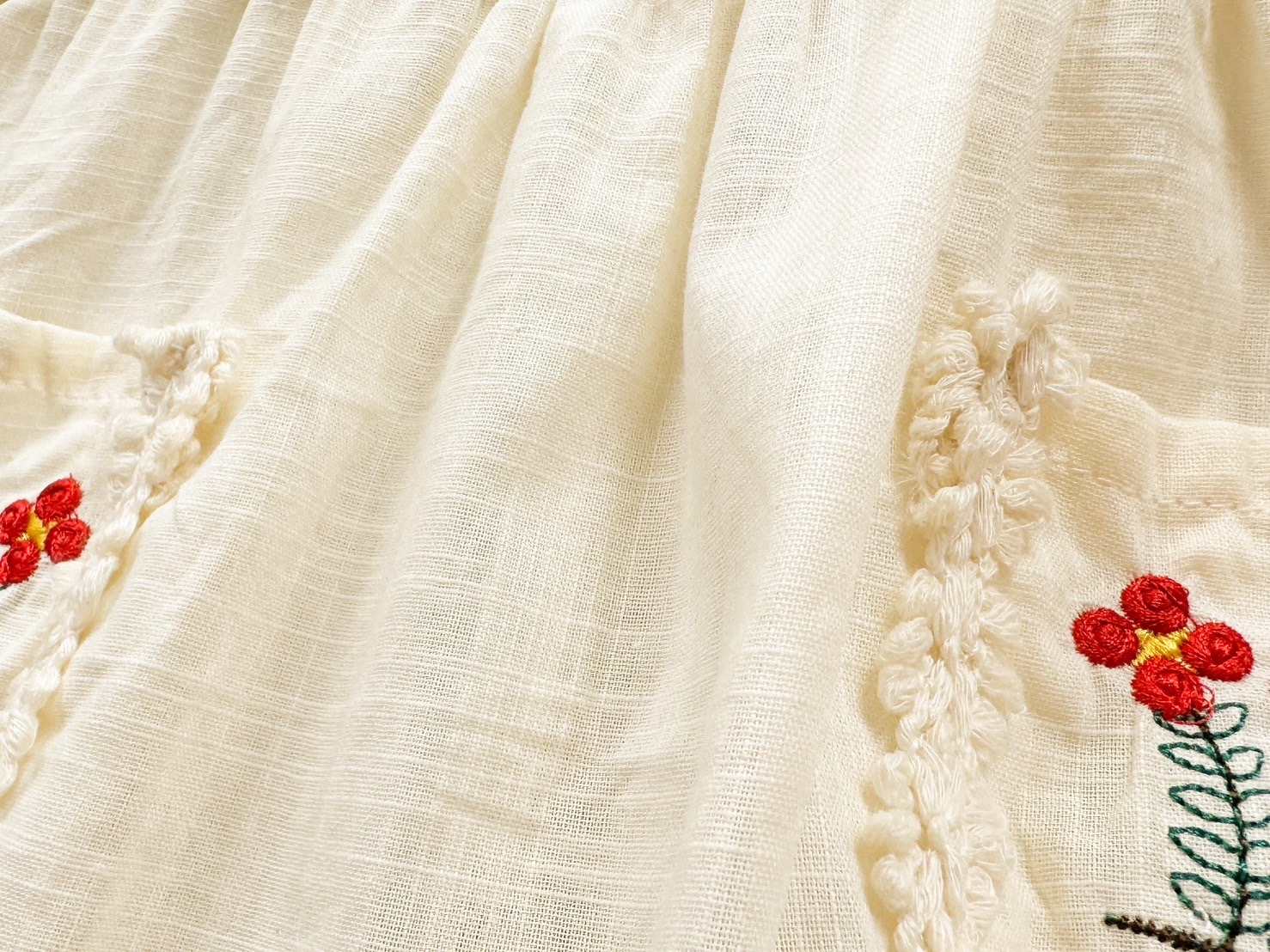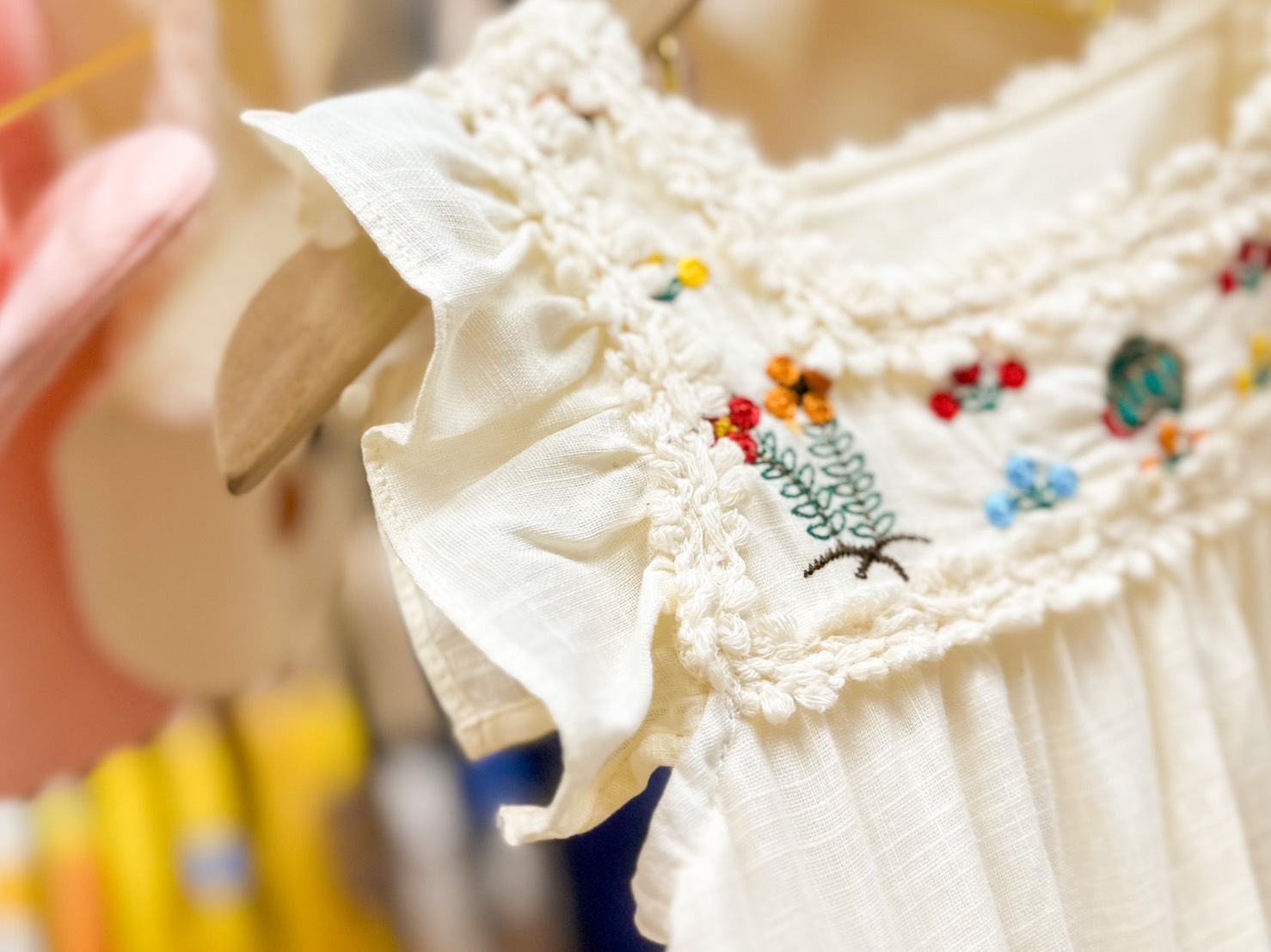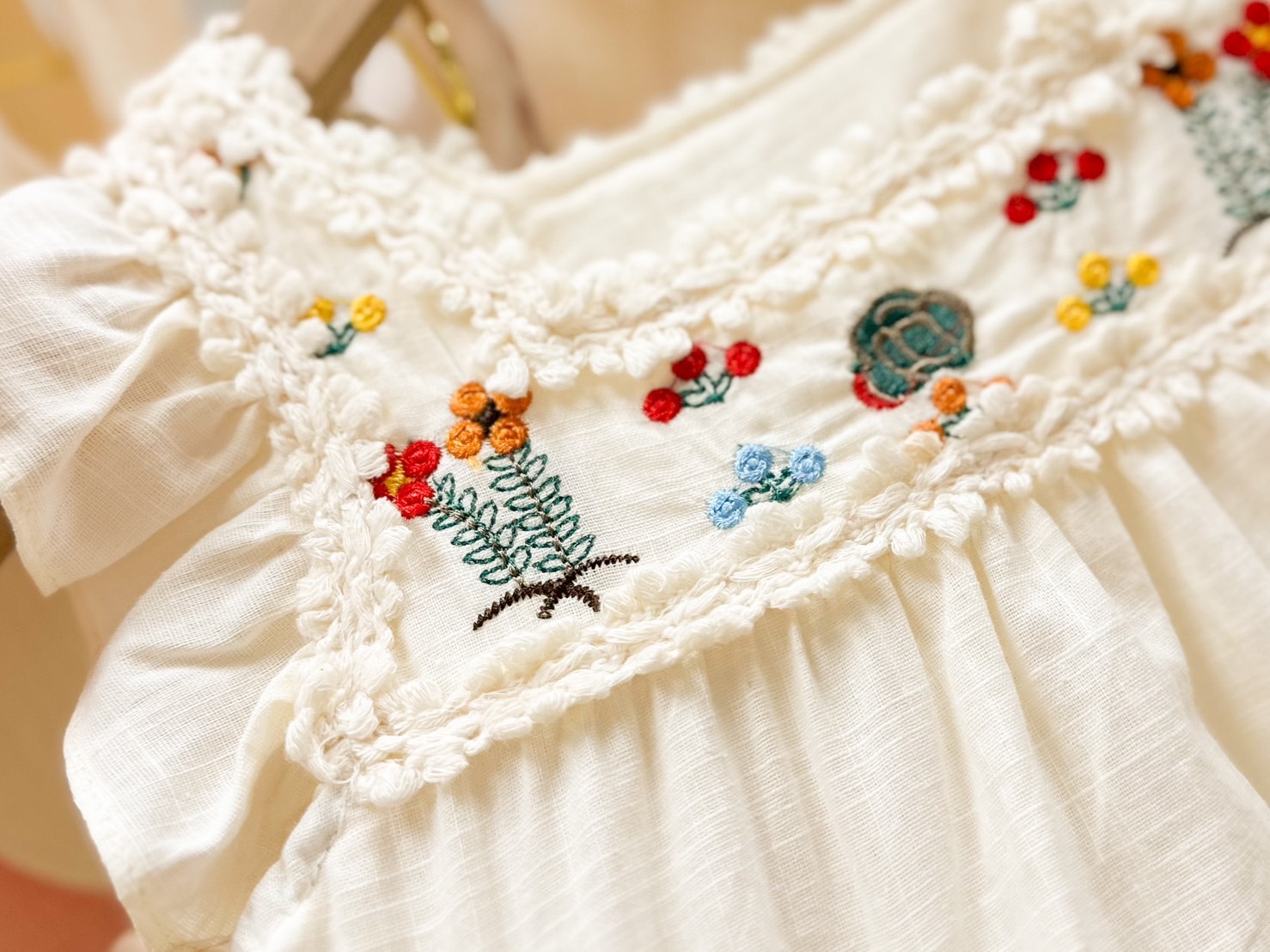 米白花花刺繡-夏季短袖/背心/飛袖 連身裙(80-130)
