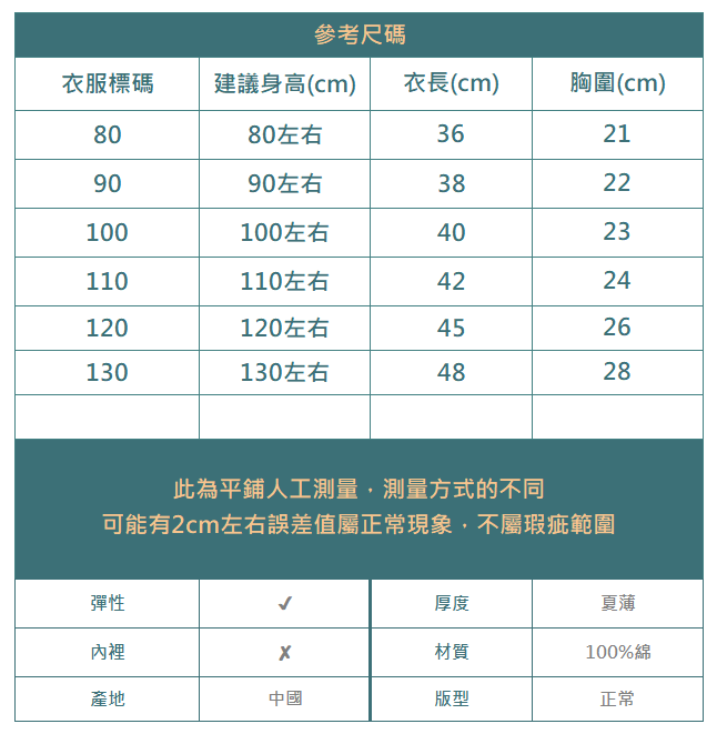 下單前務必參考尺碼表上建議身高