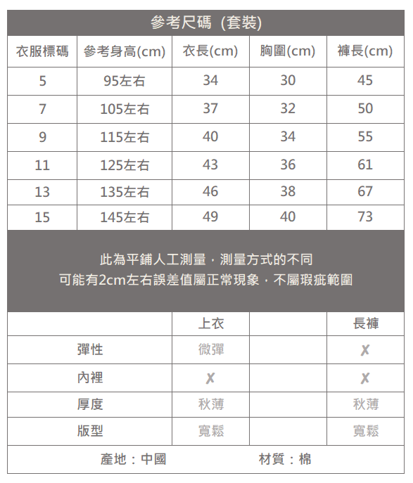 ▐ 內容物:上衣+長褲
