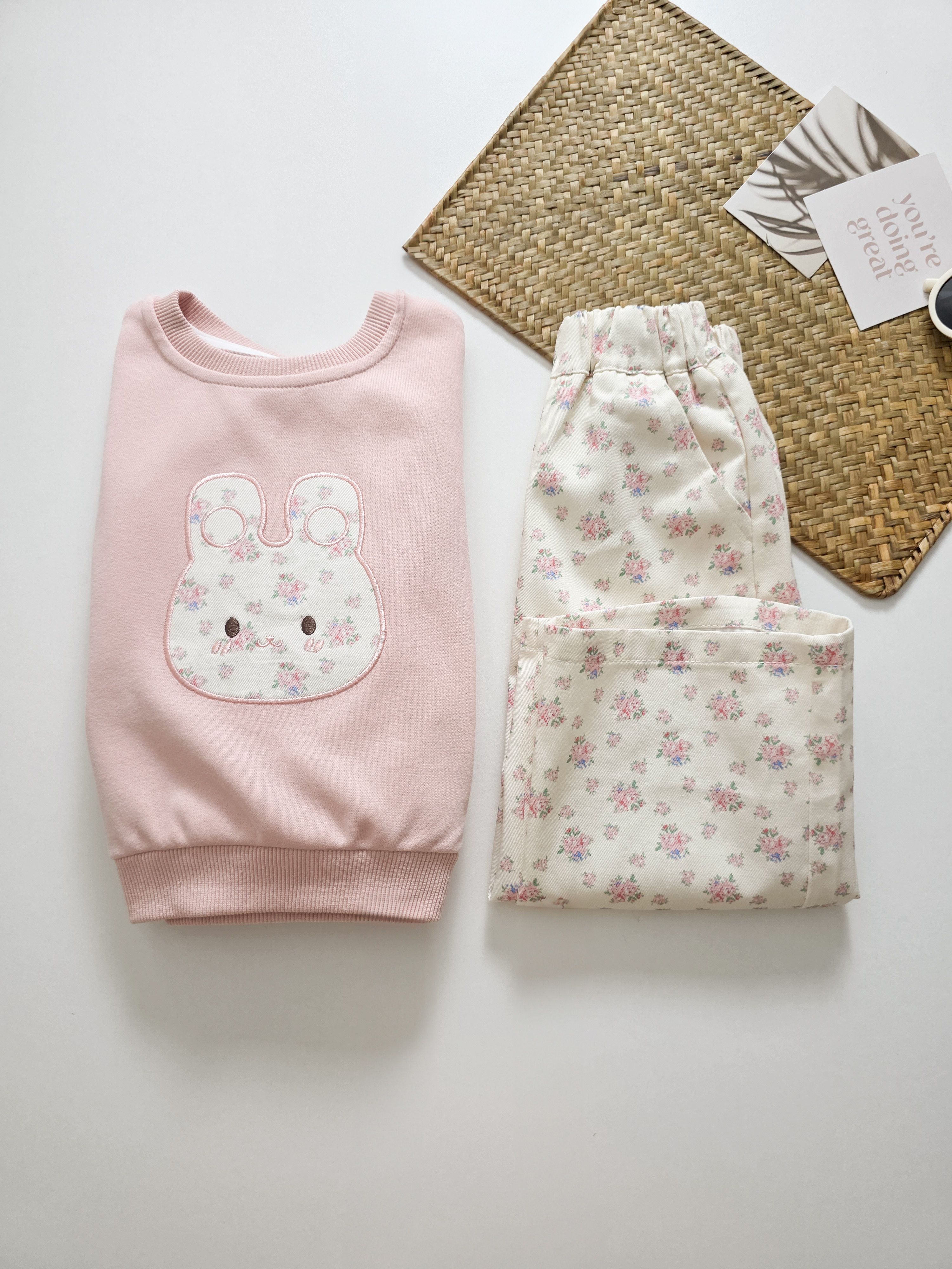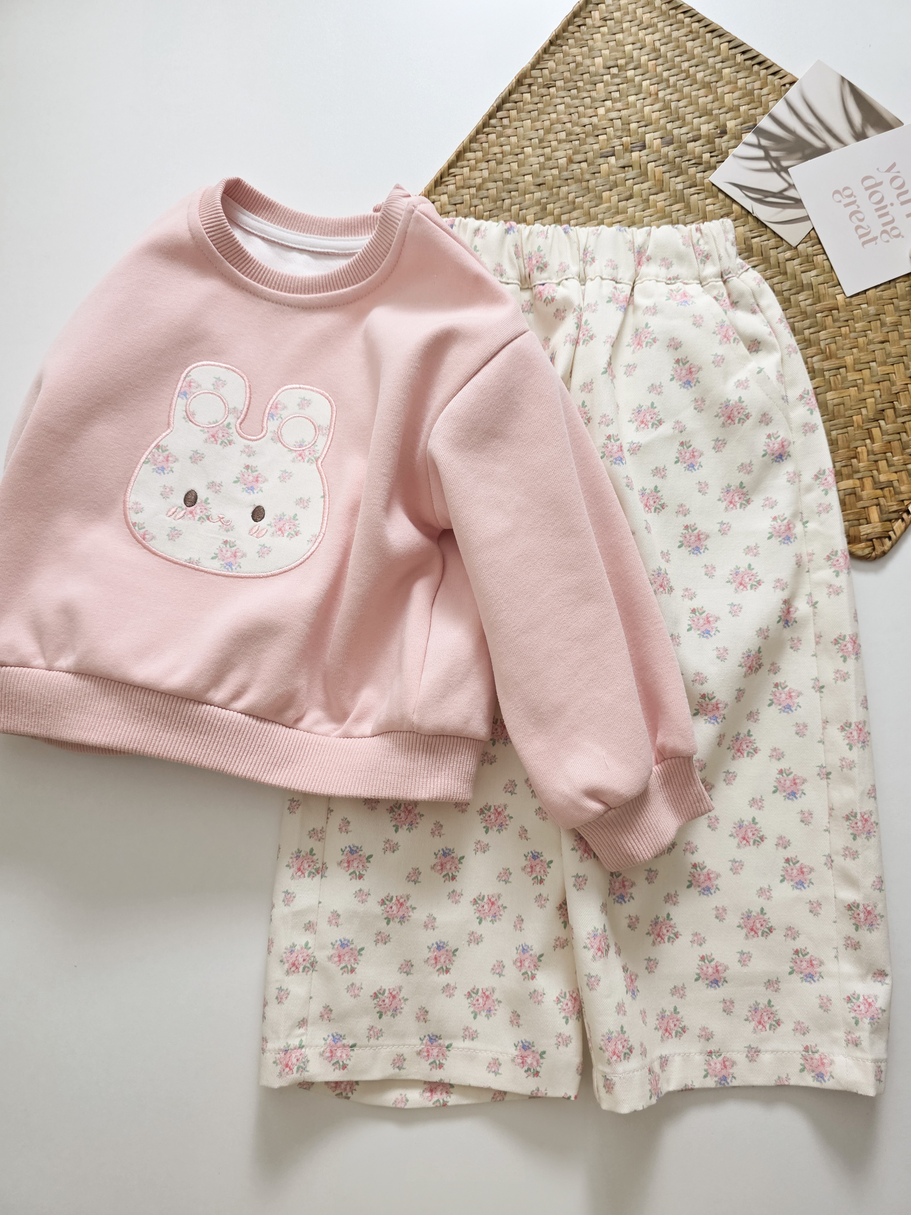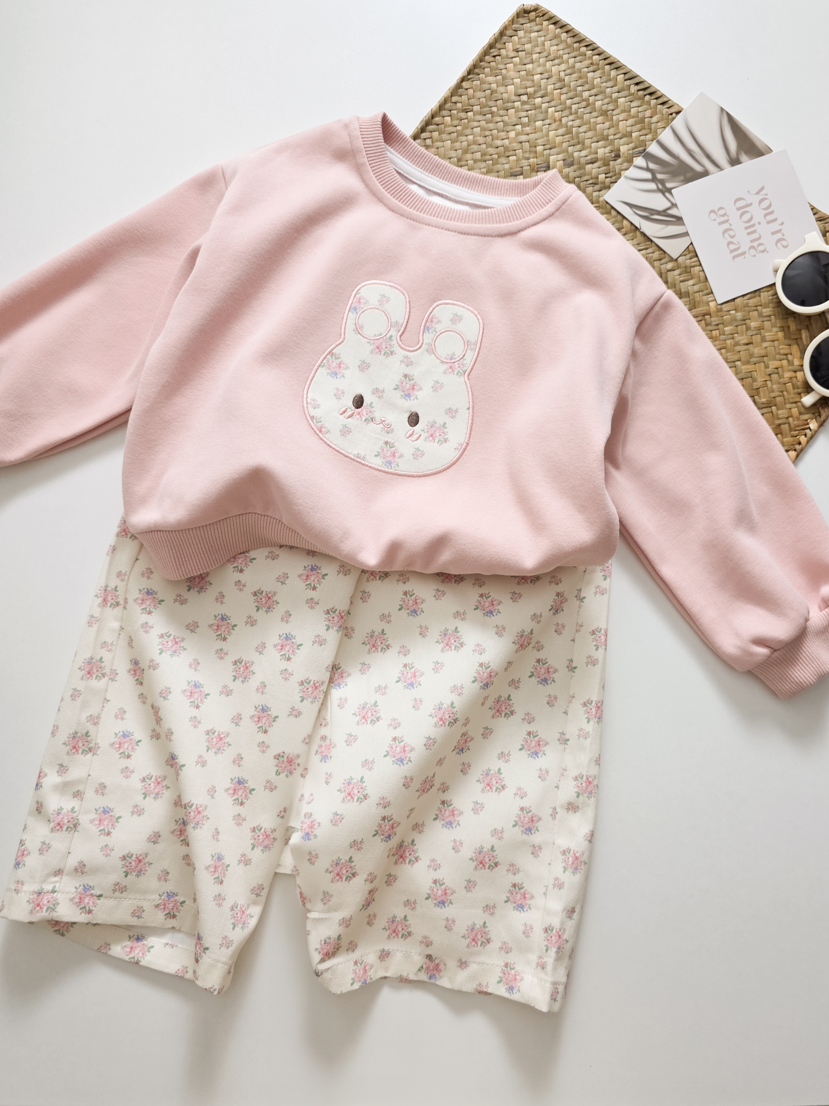 粉色碎花兔 套裝2件組