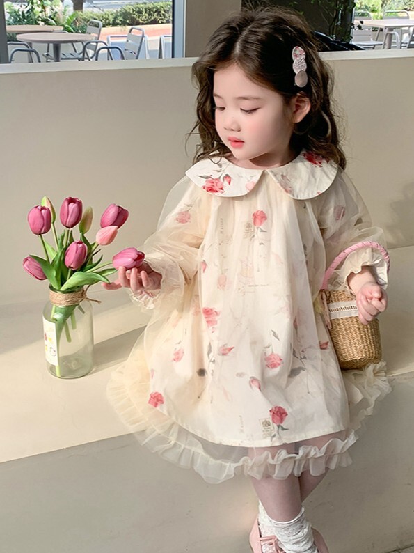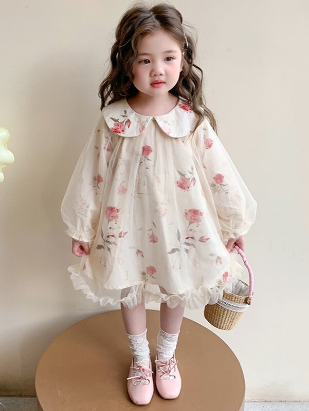 紗紗玫瑰 長袖洋裝/ 連身裙
