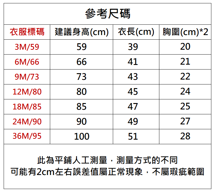 下單前務必參考尺碼表上建議身高
