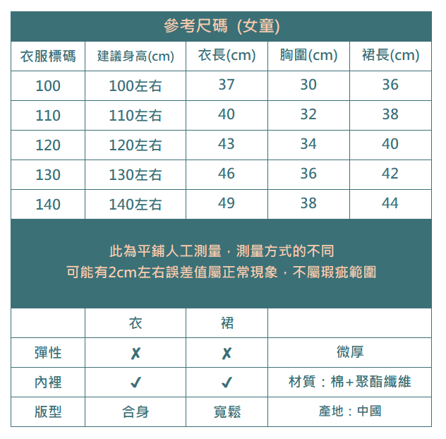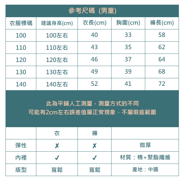 下單前務必參考尺碼表上建議身高