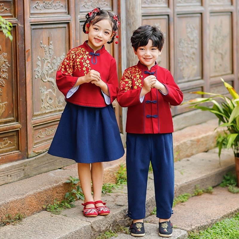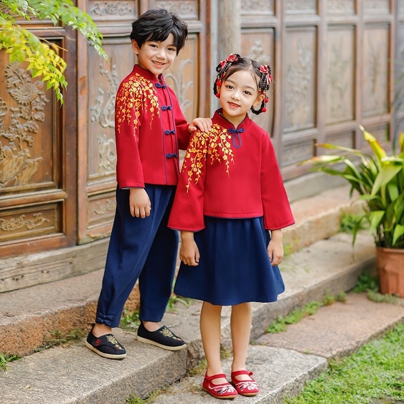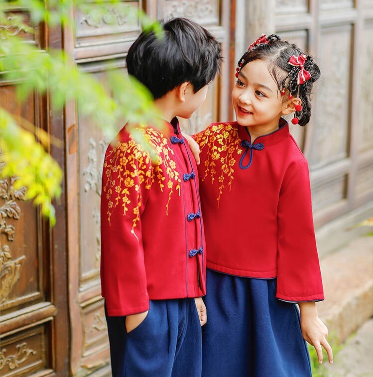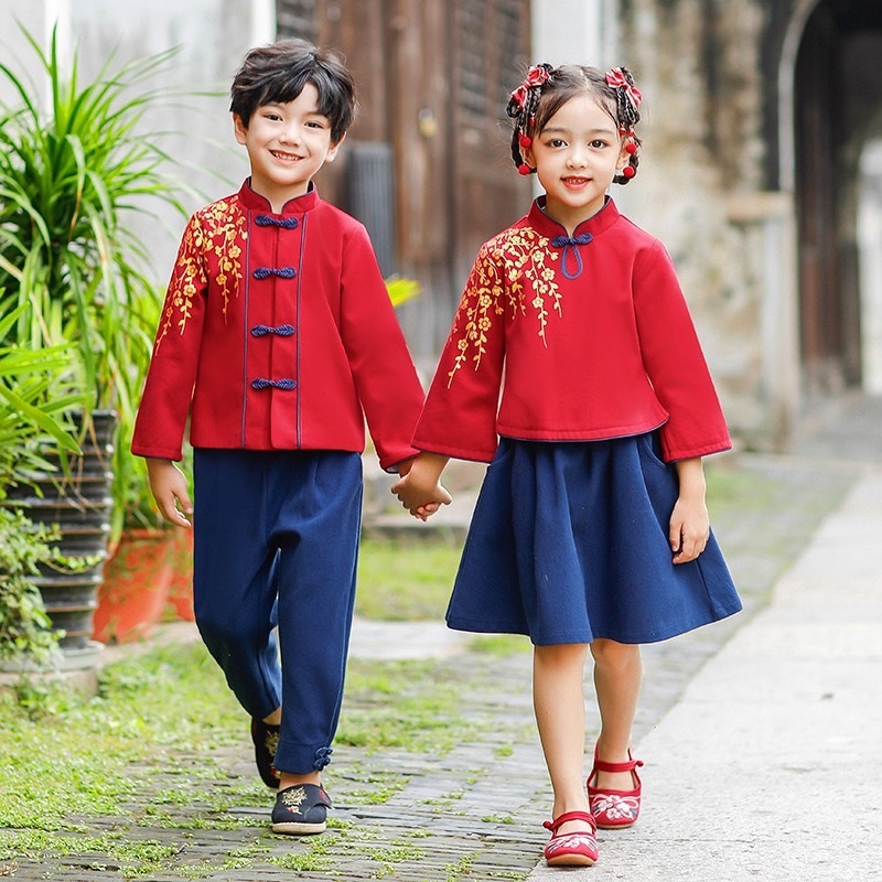 【限量】落肩櫻花-秋冬長袖中國風套裝二件組(100-140)
