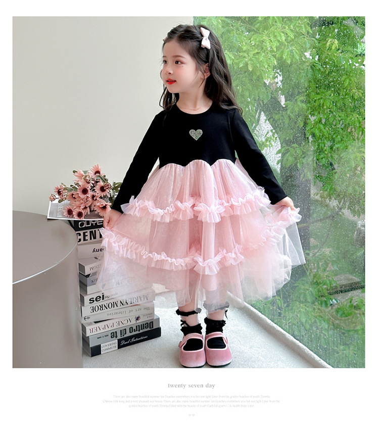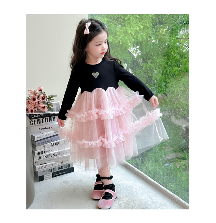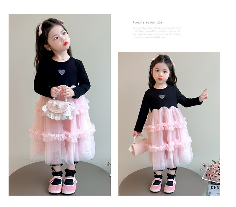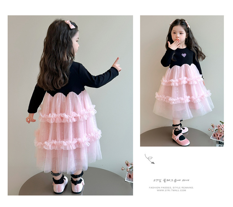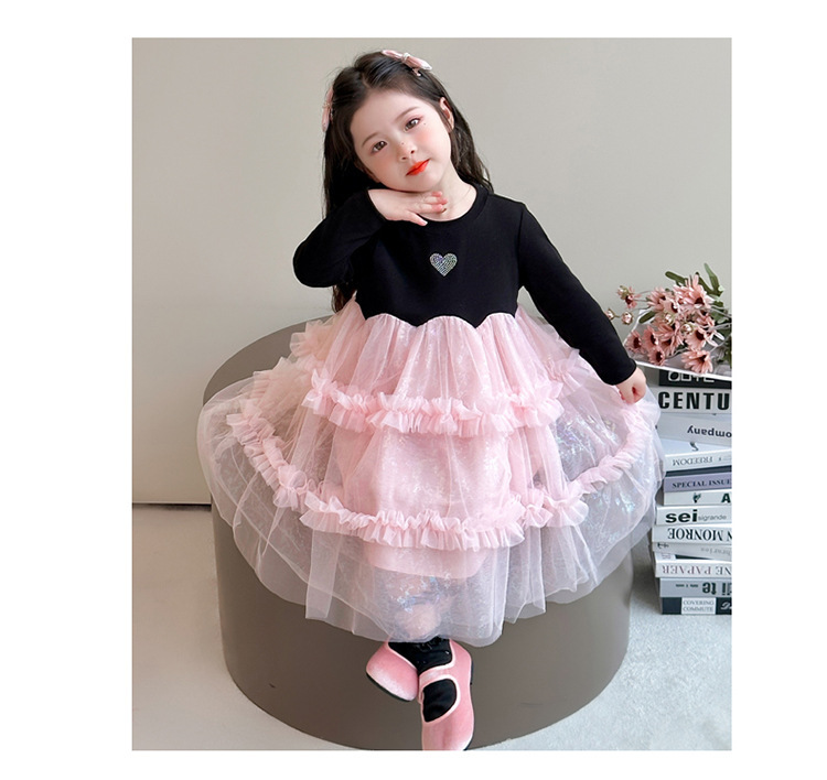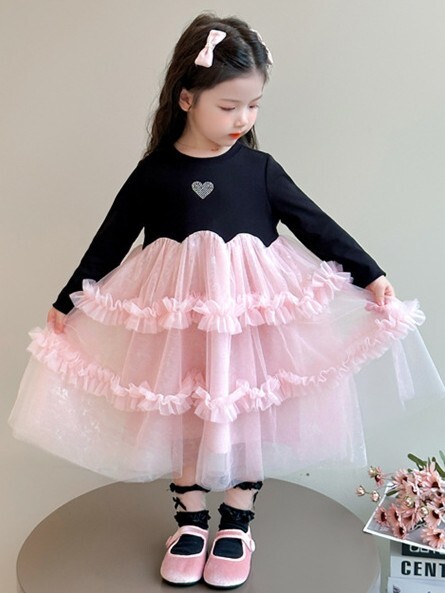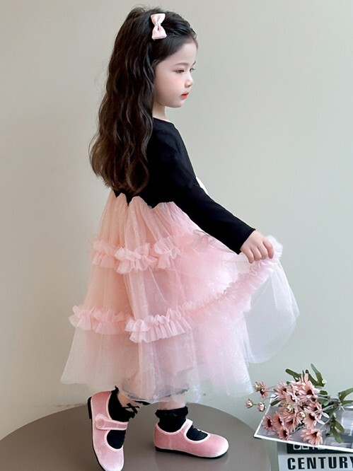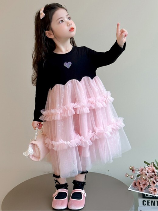 閃閃粉紗紗 長袖洋裝/ 連身裙