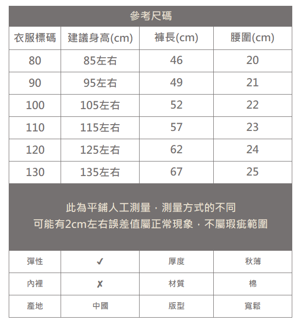 下單前務必參考尺碼表上建議身高