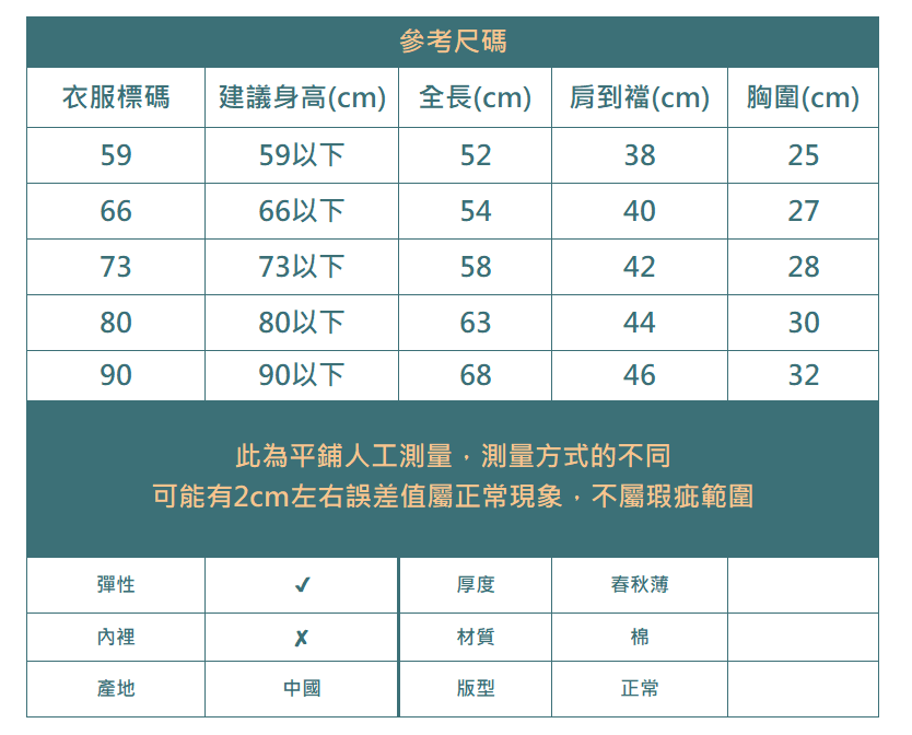 下單前務必參考尺碼表上建議身高