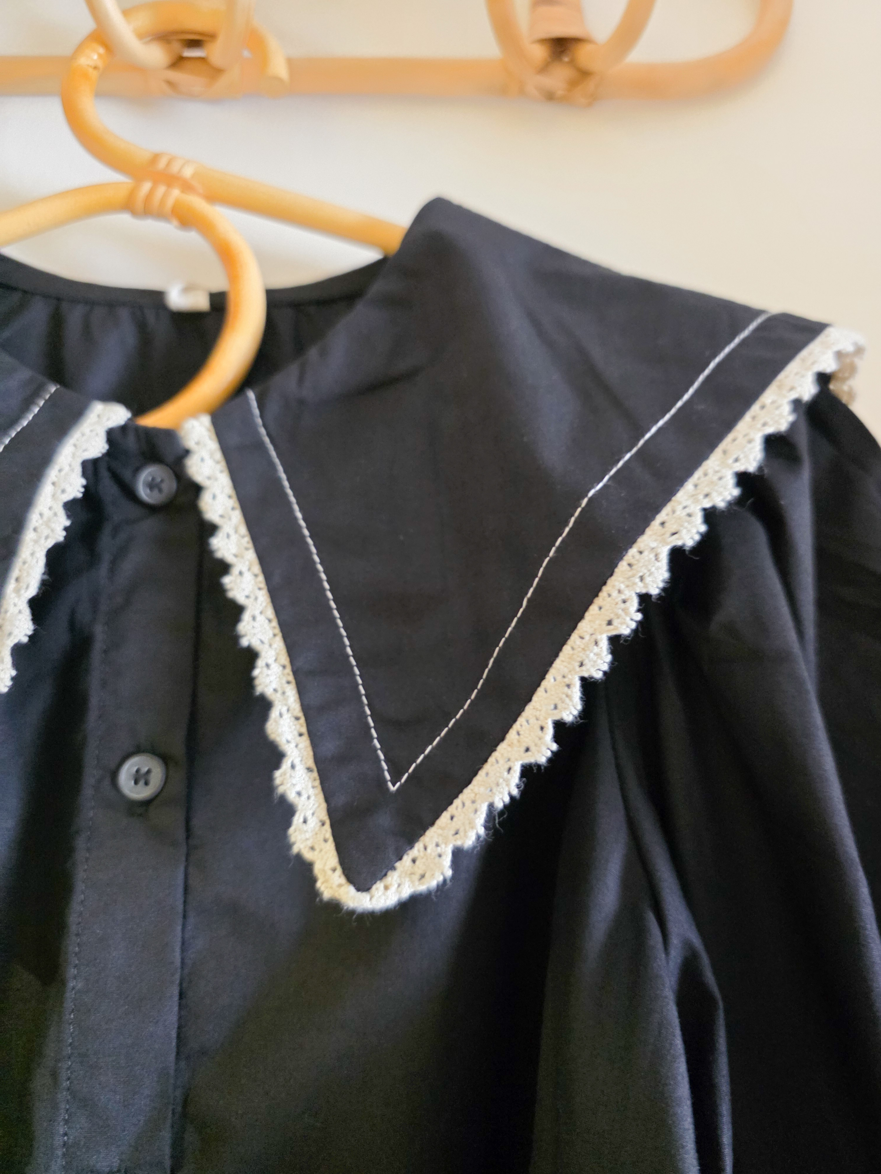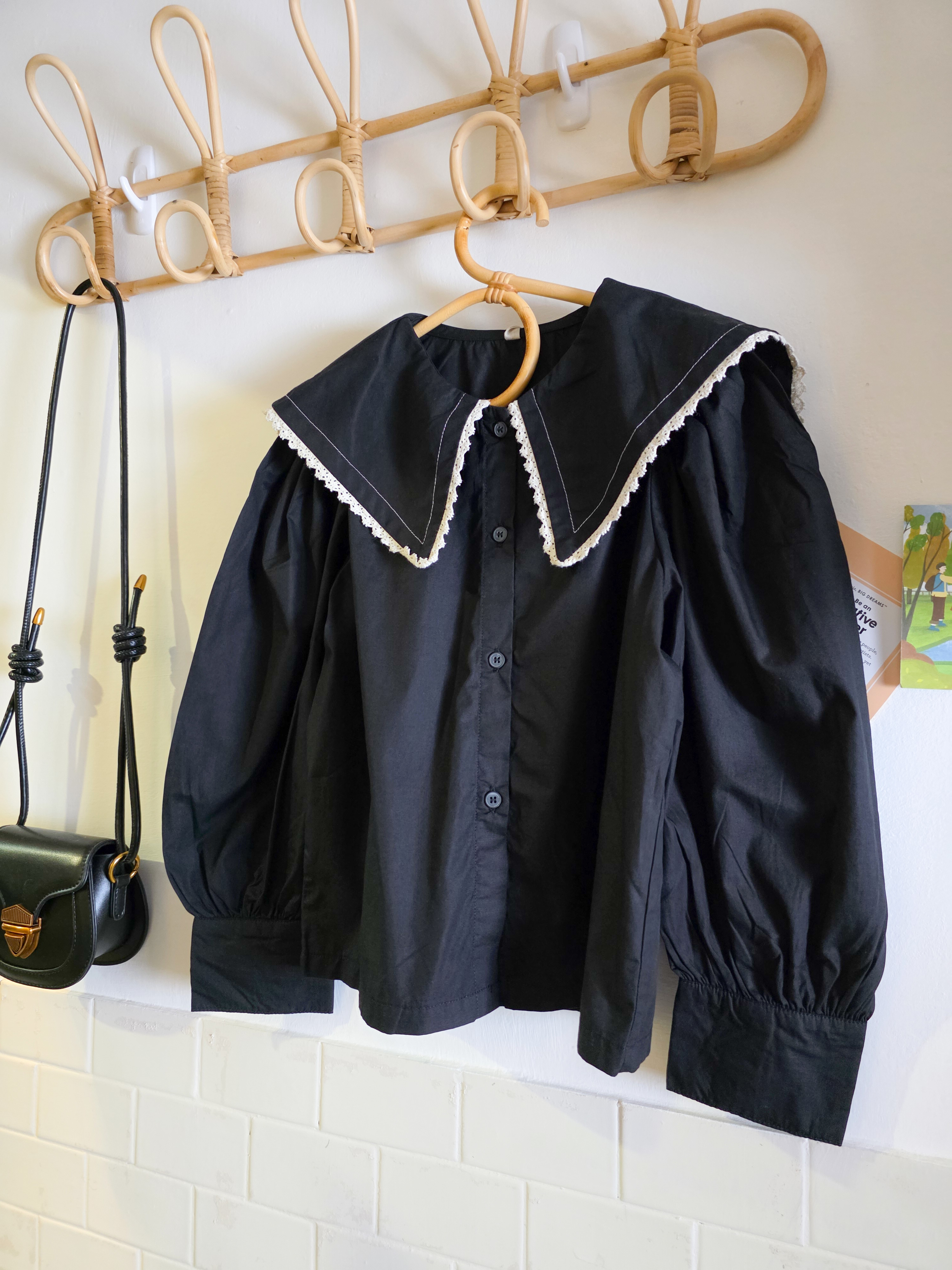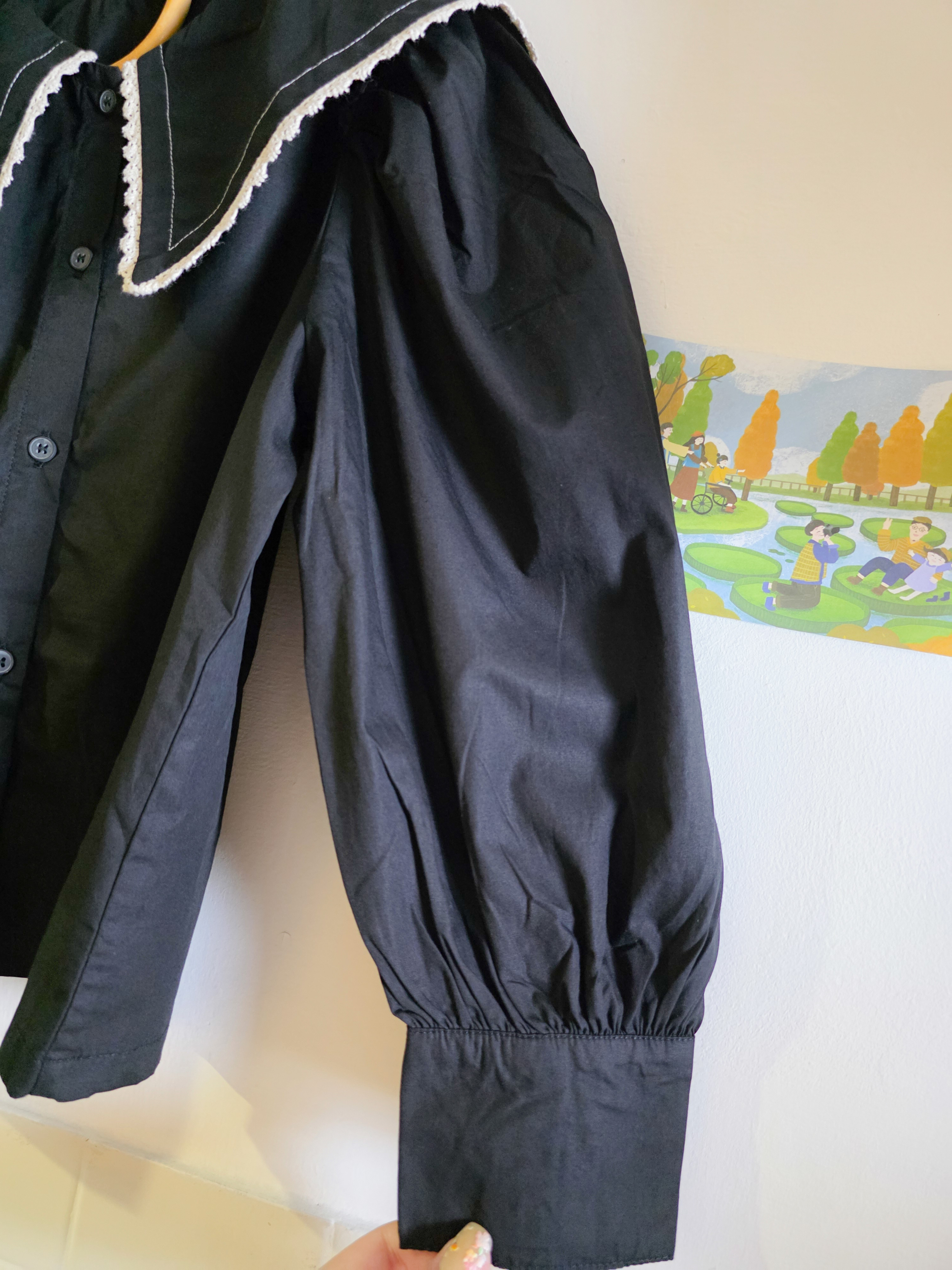 黑色大荷葉邊 長袖上衣/襯衫(PE)