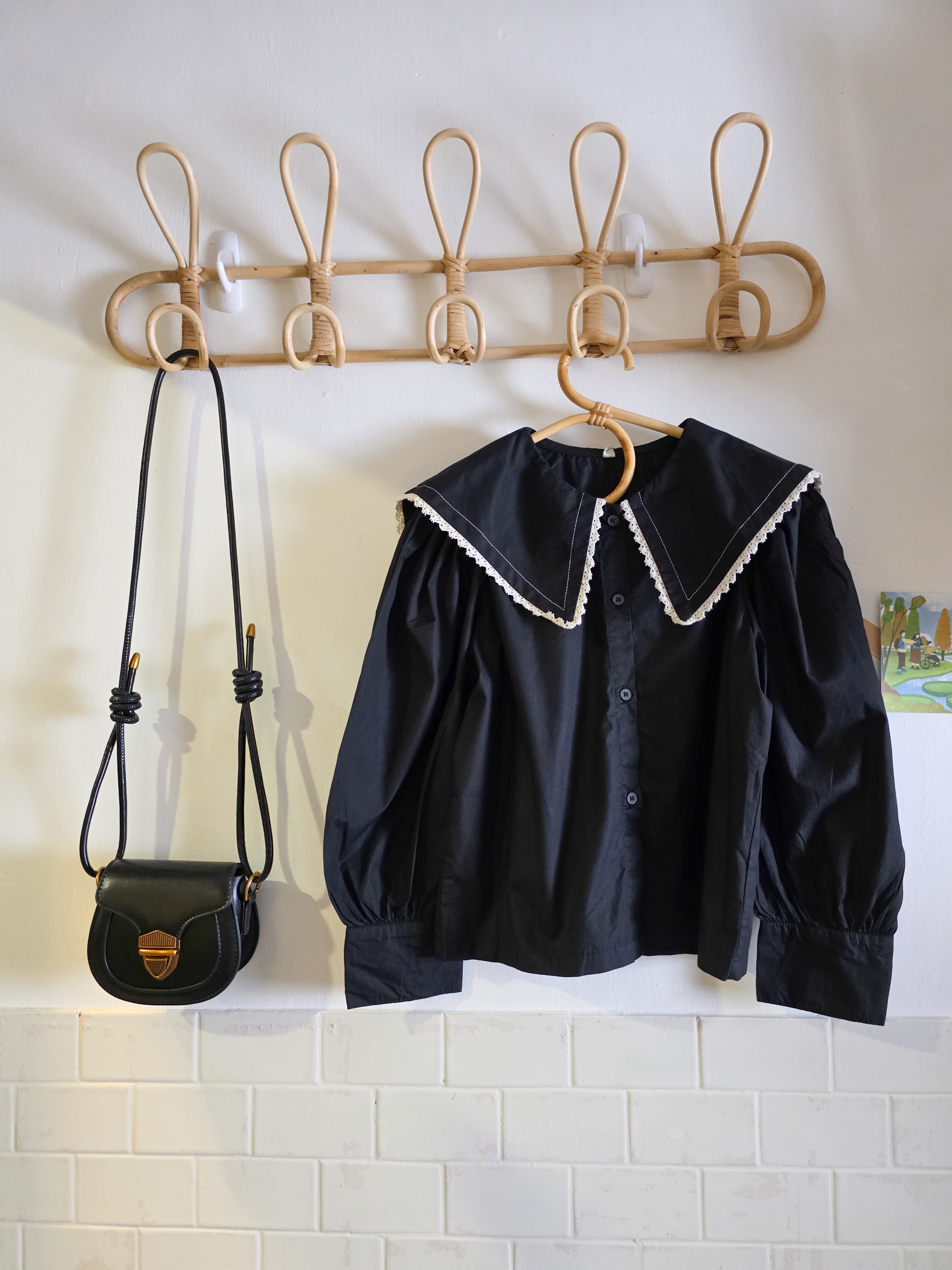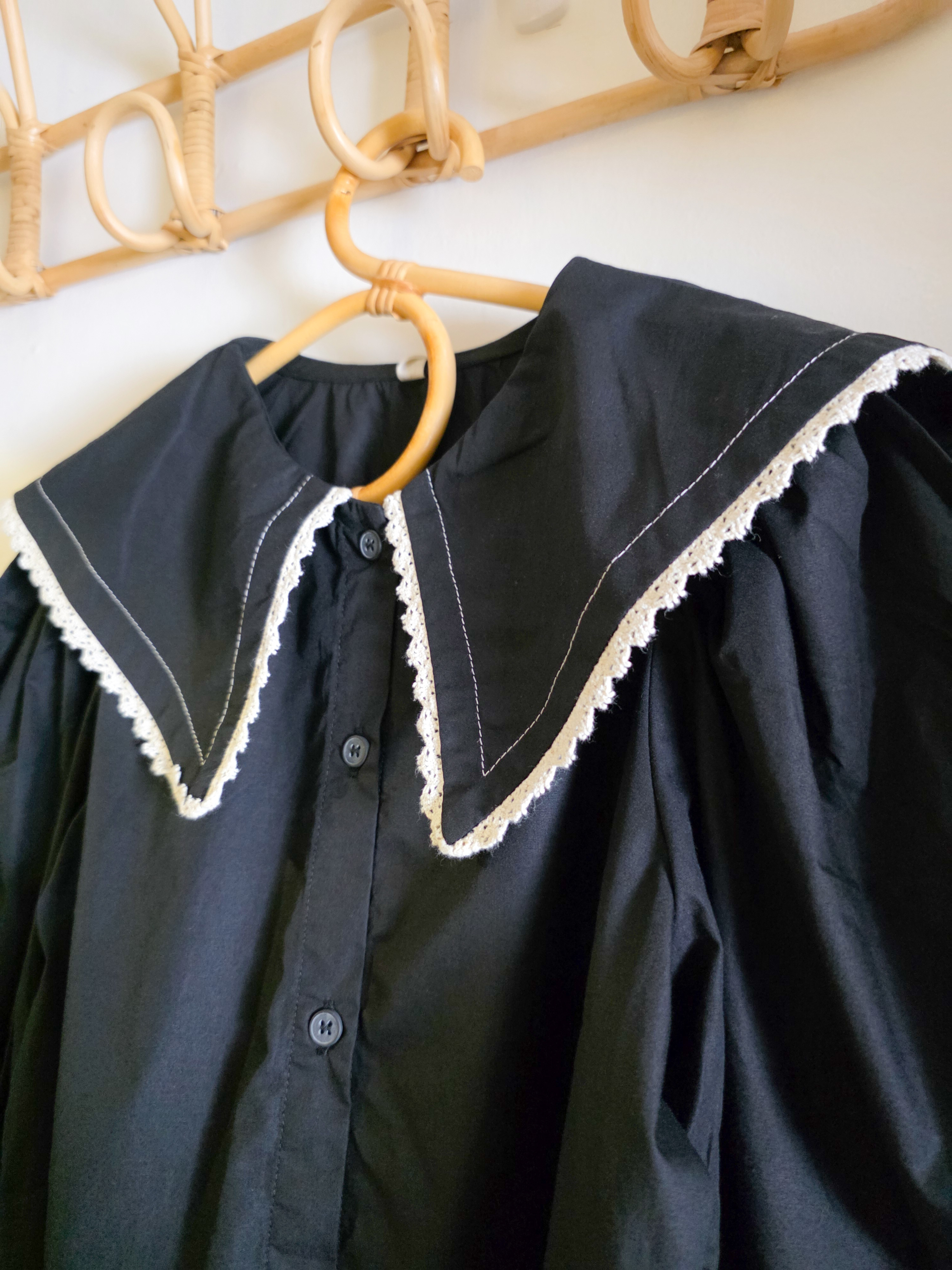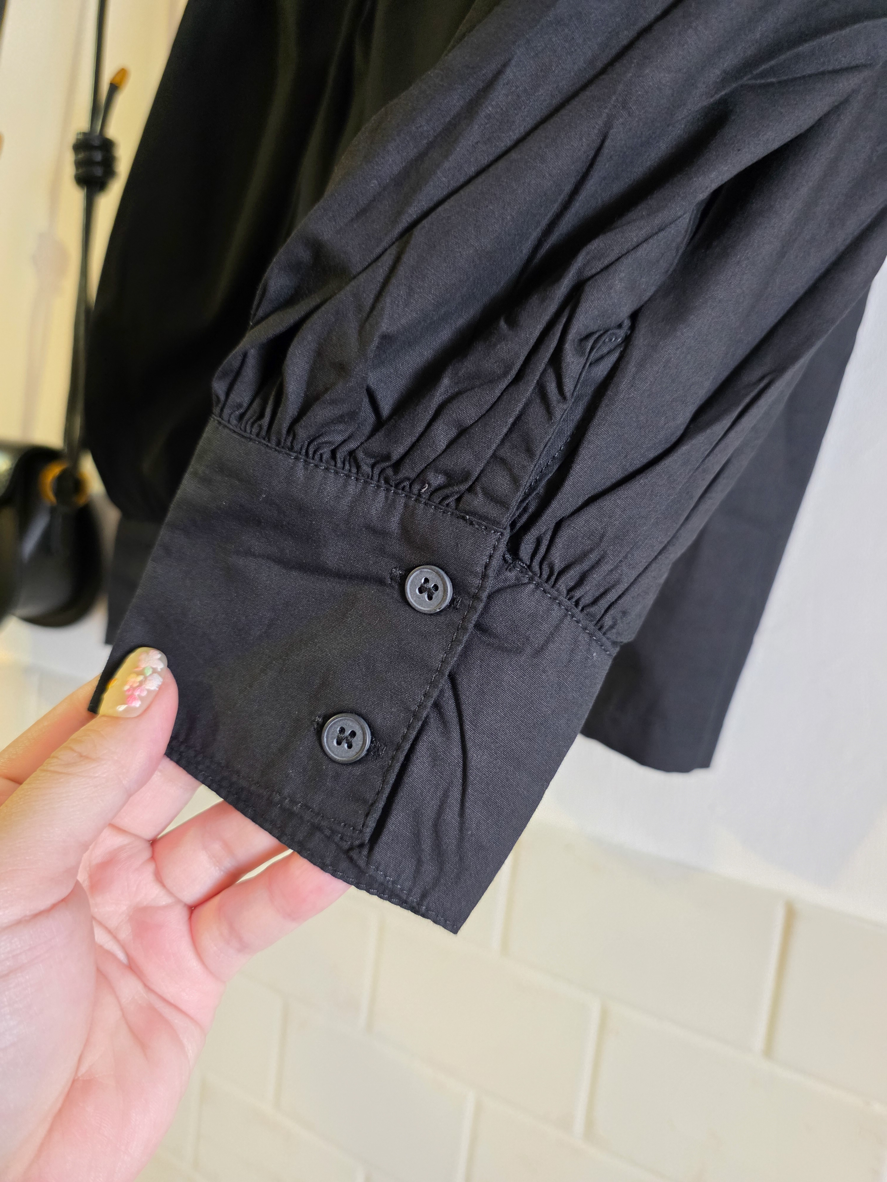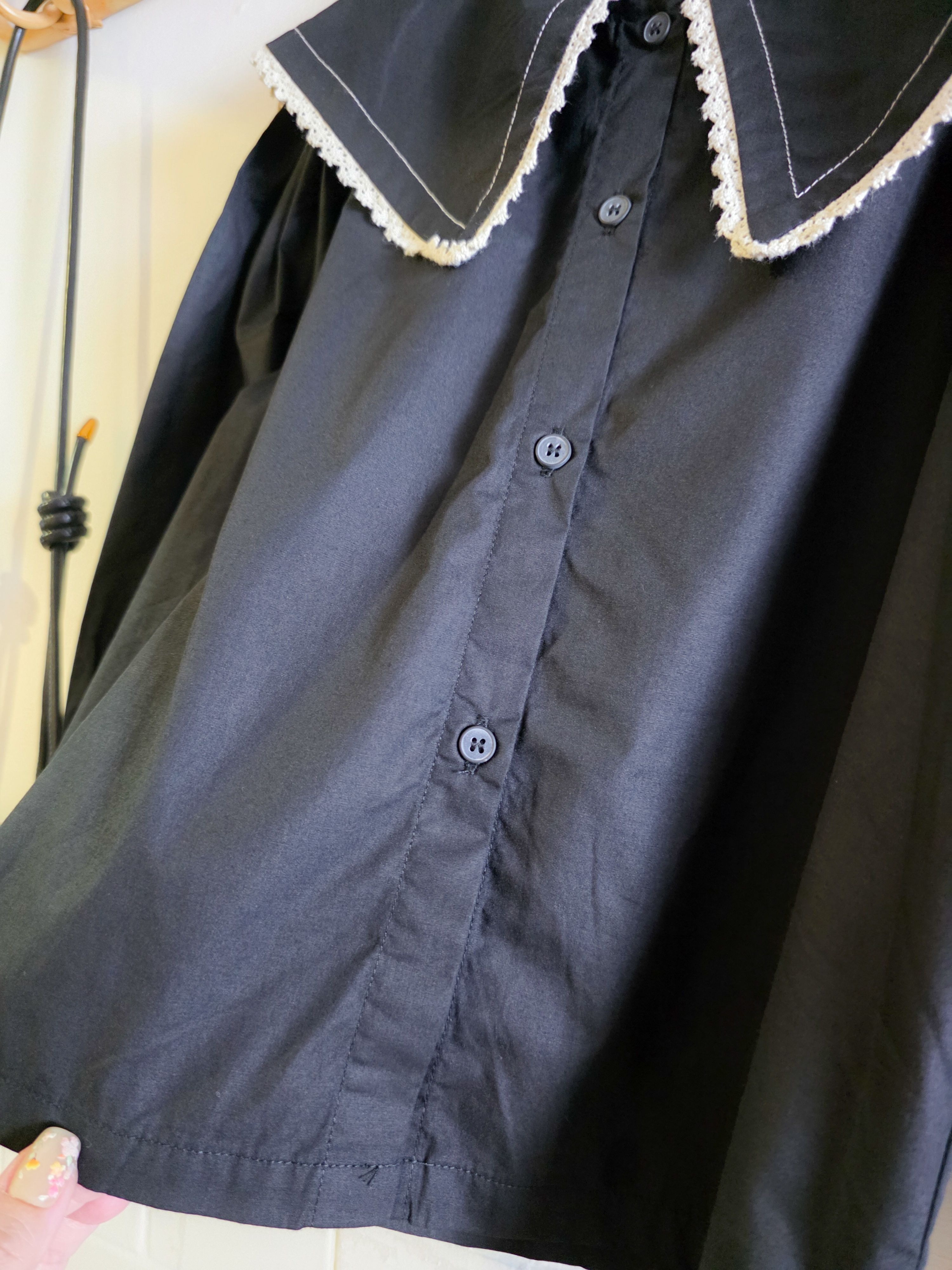 黑色大荷葉邊 長袖上衣/襯衫(PE)