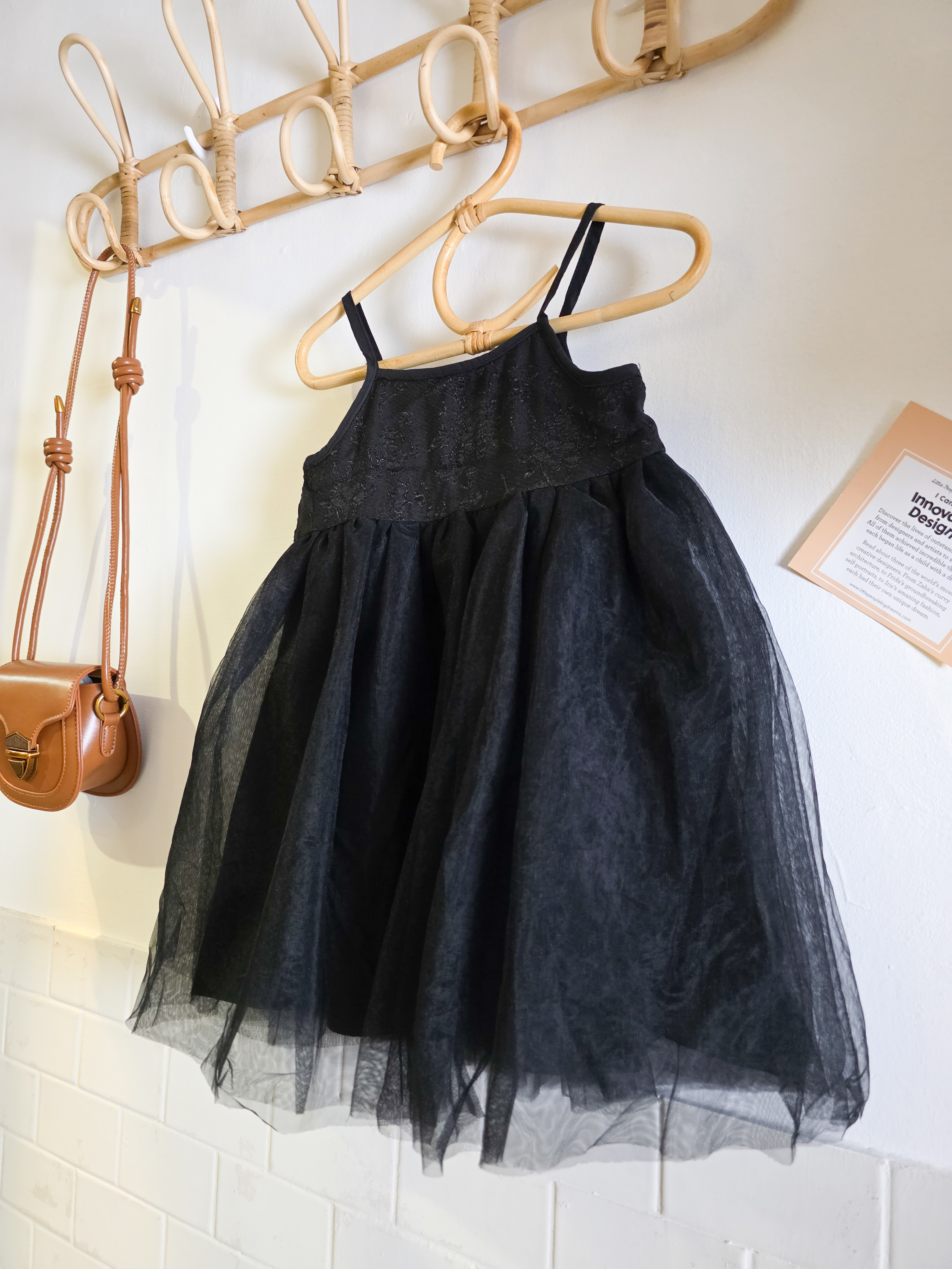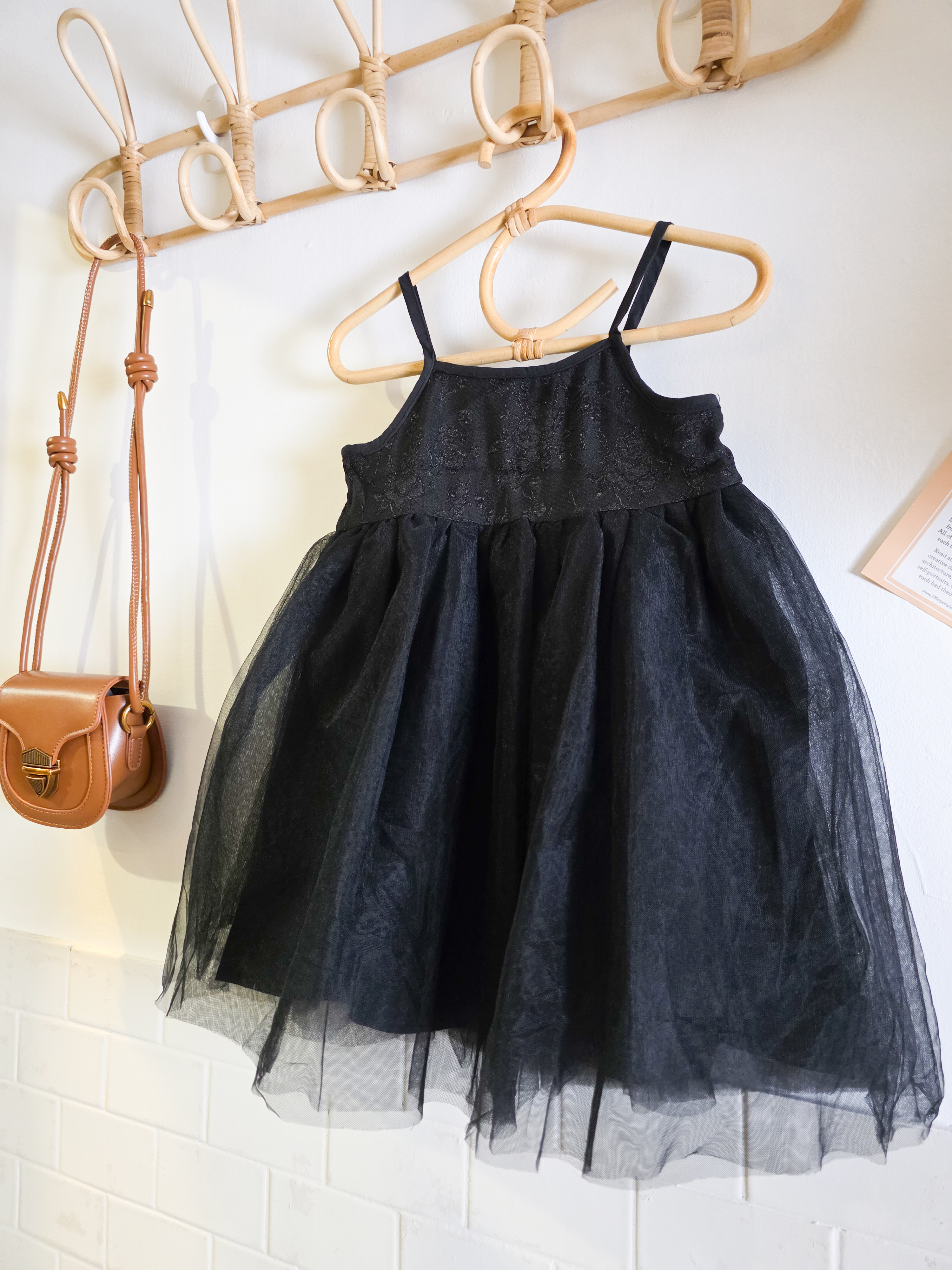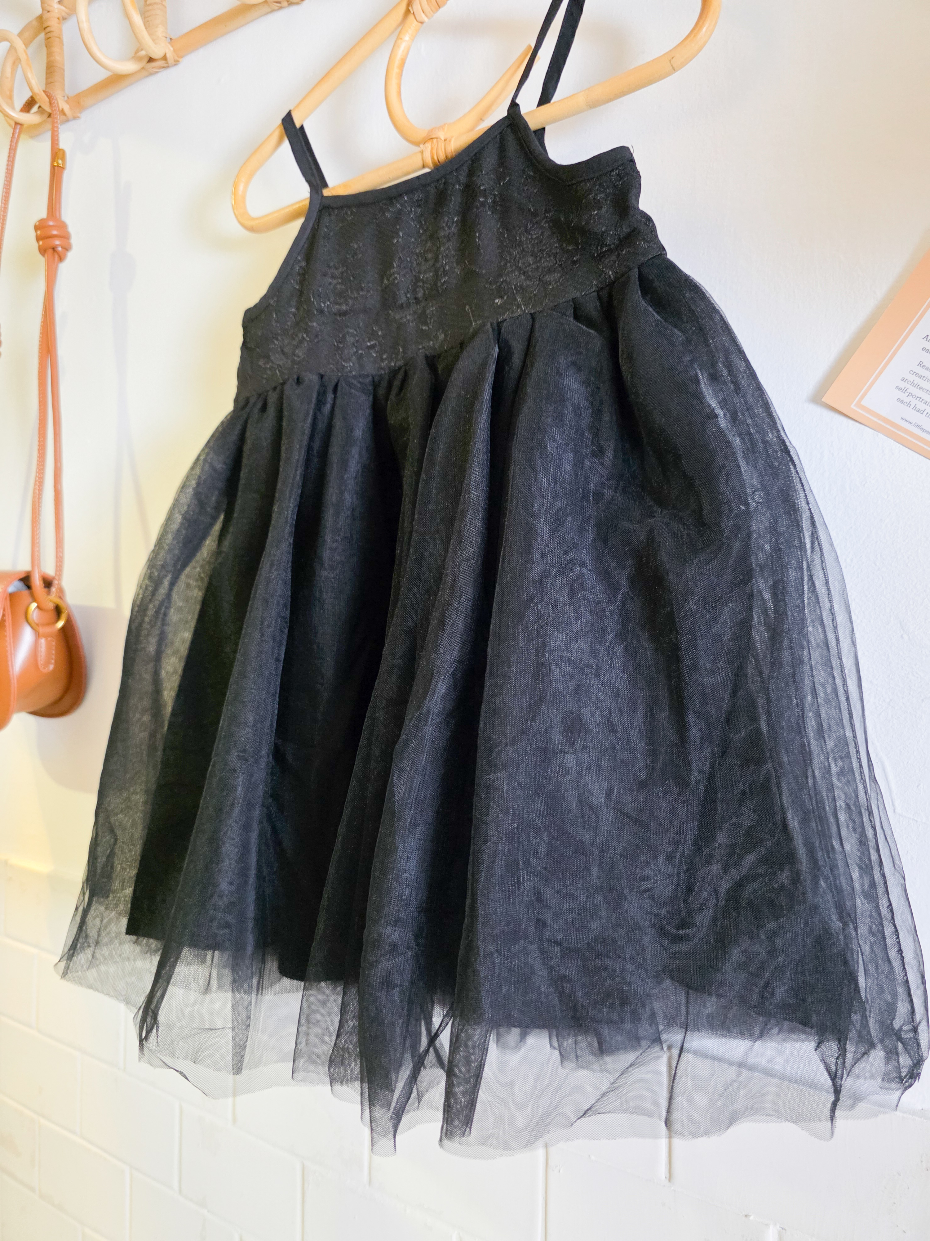 黑色肩帶紗紗連身裙(PE)